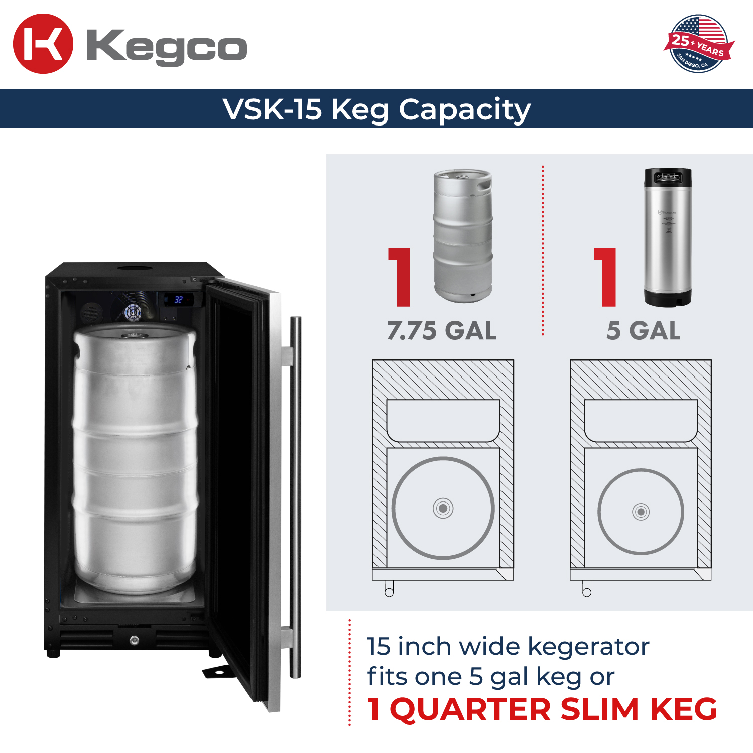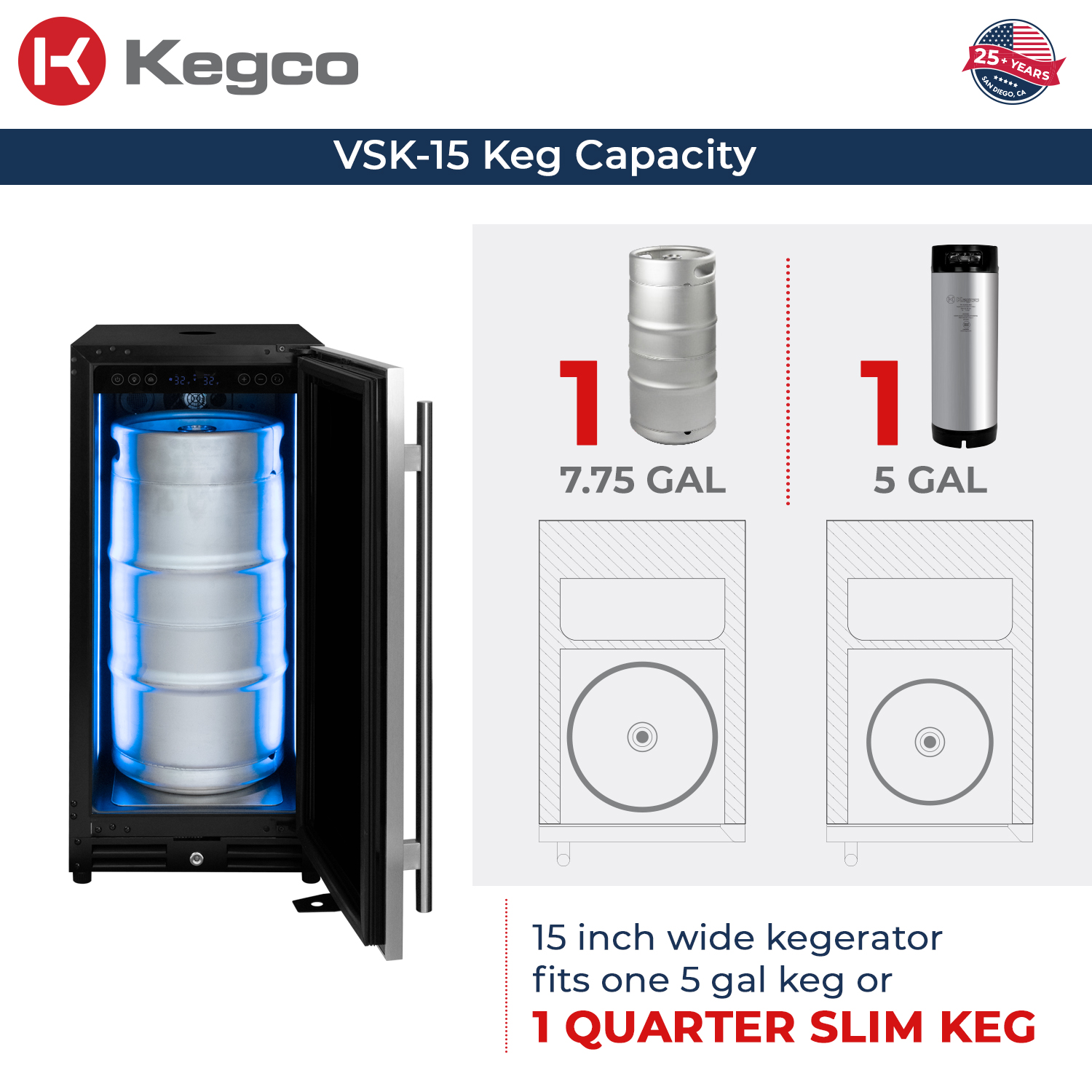 - Compact design that is capable of accommodating 7.75 gallon quarter slim kegs as well as 5 gallon sankey or homebrew kegs