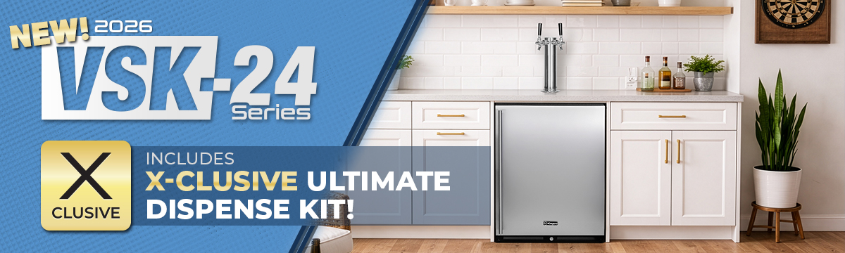 Elevate your home entertainment experience with the Kegco VSK-24 series kegerator, a premium 24-inch kegerator designed for ultimate versatility. Whether built directly into your cabinetry or placed as a freestanding unit, its front-venting stainless steel design and digital temperature control ensure your beverage is always served at the perfect chill (32-64°F). This high-performance dispenser features a spacious interior capable of holding a full-size keg or multiple smaller kegs, powered by forced-air refrigeration for consistent cooling. Complete with an X-clusive ultimate dispense kit that includes a stainless steel tower, regulator, drip tray, and tank, the VSK-24 series is the all-in-one solution for bringing the taproom experience straight to your kitchen or bar.