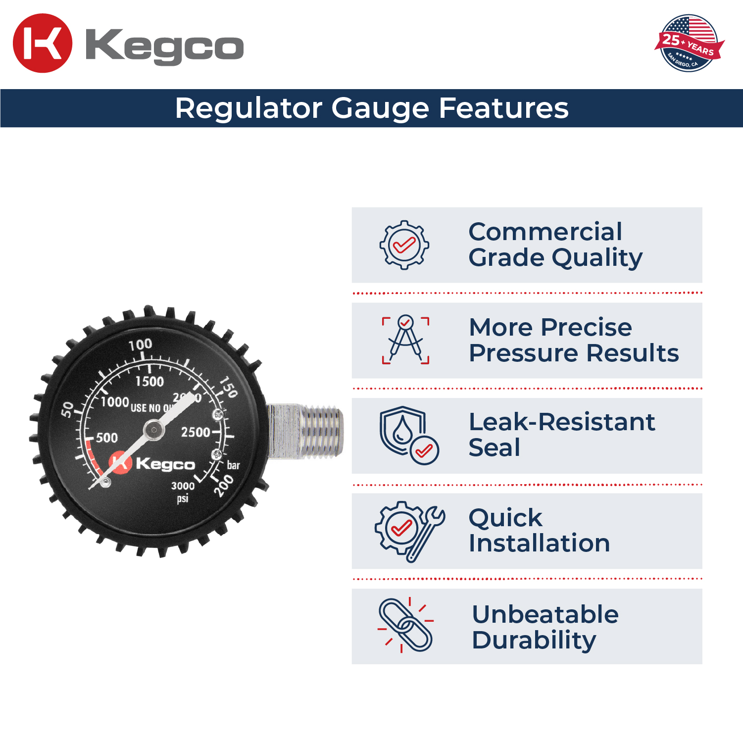 - The high pressure gauge was designed to match Kegco Elite Series regulators