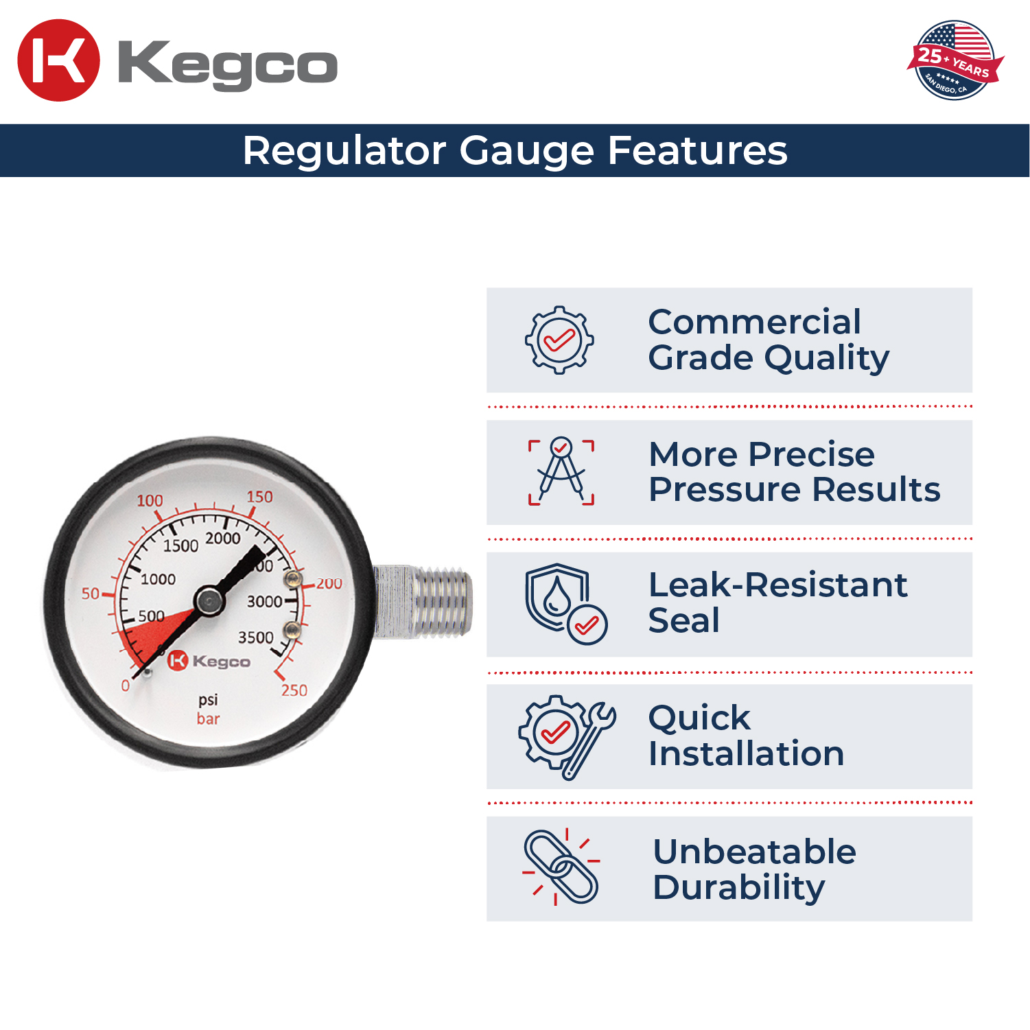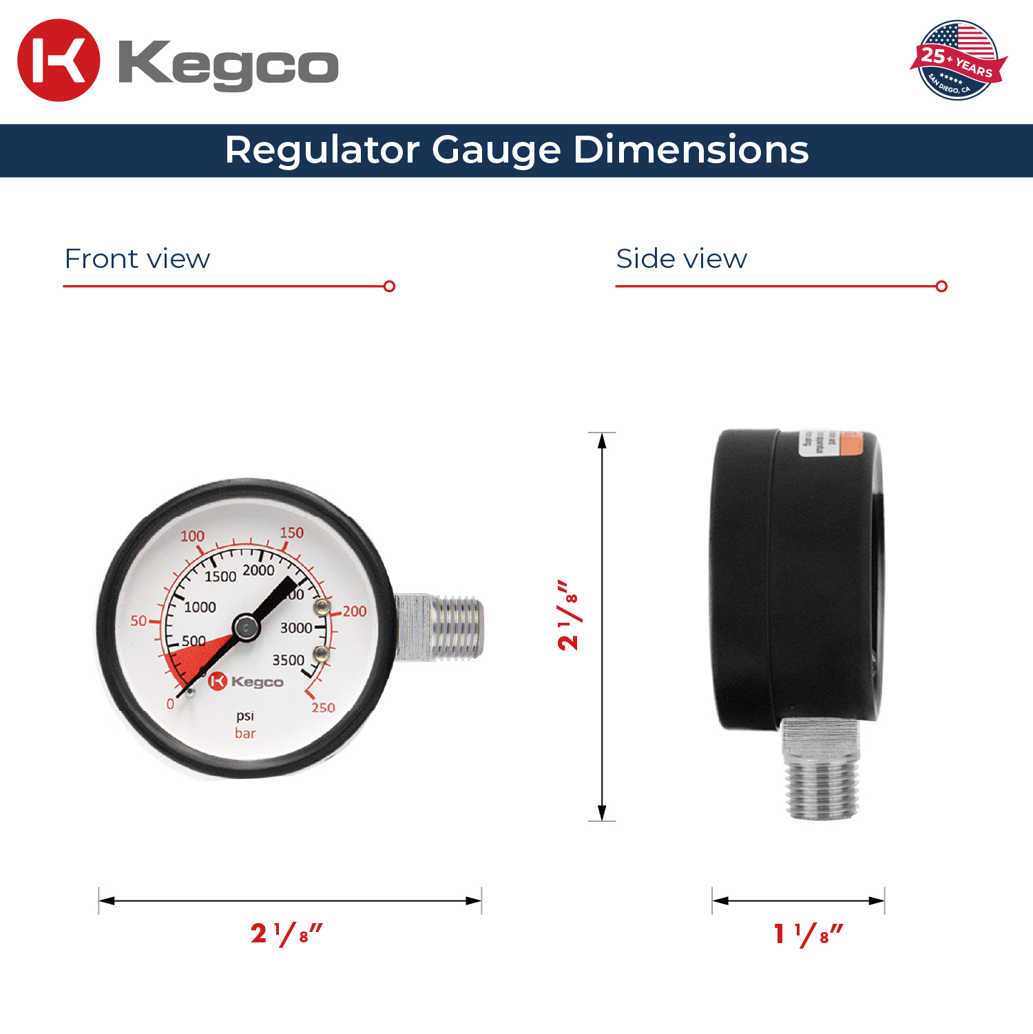 - High pressure gauge has a 0-3500 lb. keg pressure range