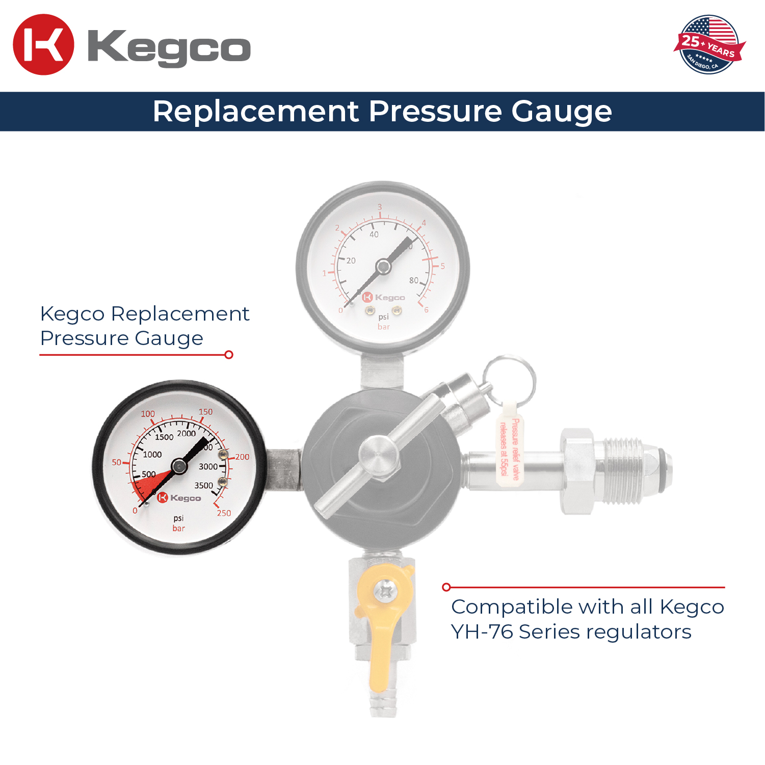 - Designed for use with Kegco YH-76 series regulators