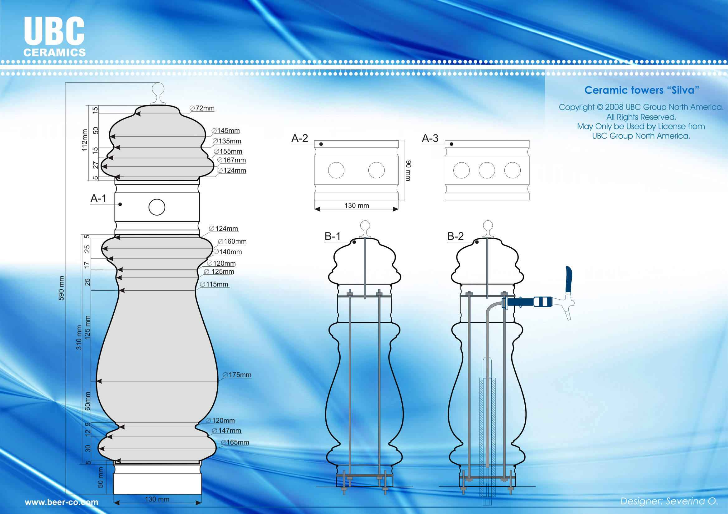 UBC Silva Ceramic Triple Faucet Draft Beer Tower - White with Chrome Accents