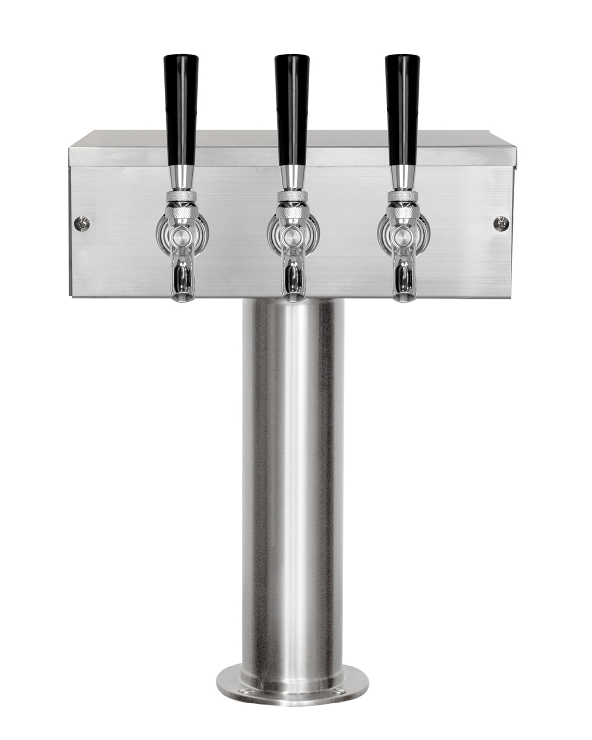 This Kegco TTOW-3F-SS T-Style Draft Beer Tower comes equipped with three beer line assemblies that can connect to all standard keg couplers. The 3" column matches up with most kegerator keg beer dispensers, making this an easy upgrade. The tower's polished stainless steel finish will look great with any appliance. The top is removable, allowing easy access to the rear of the draft beer shanks for any necessary maintenance.