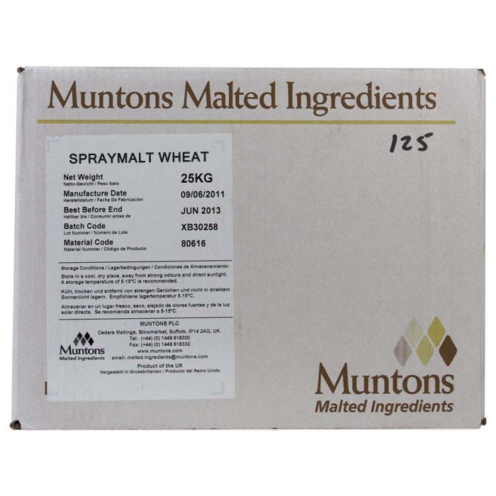 As with Muntons' liquid malt extracts, Spraymalts can be either used as brew-house extenders or as the entire base material for your recipe. Muntons Wheat Dry Malt Extract is excellent for all traditional wheat beer styles and for creative brewing with most other styles as well to add extra body and richness. Ideal for brewing German Style wheat beers and as an aid to head retention in normal beer styles.