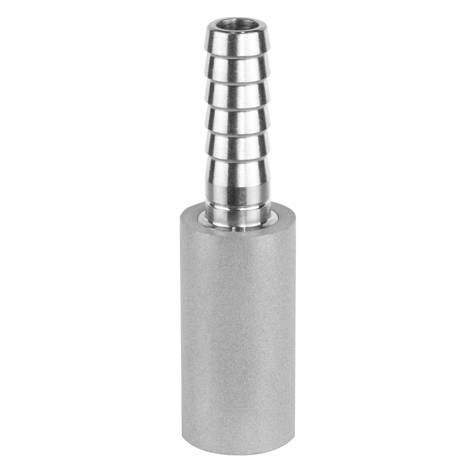 Diffusion Stones, or 'Air Stones', are commonly used to aerate wort before fermentation, which helps ensure a healthy start to the fermentation process. Diffusion Stones can be attached to compressed oxygen tanks or air pumps (such as those used with aquariums). This "Stone" is made of stainless steel, so it's durable, easy to clean, and won't crumble in your wort after a few uses like other materials! Less air pressure is required to force gas through the 2 micron stone compared to stones with smaller pores, making the 2 micron stone ideal for use with small air pumps. But beware that many lightly powered aquarium pumps may still produce insufficient pressure to force air through the stone and into the wort.