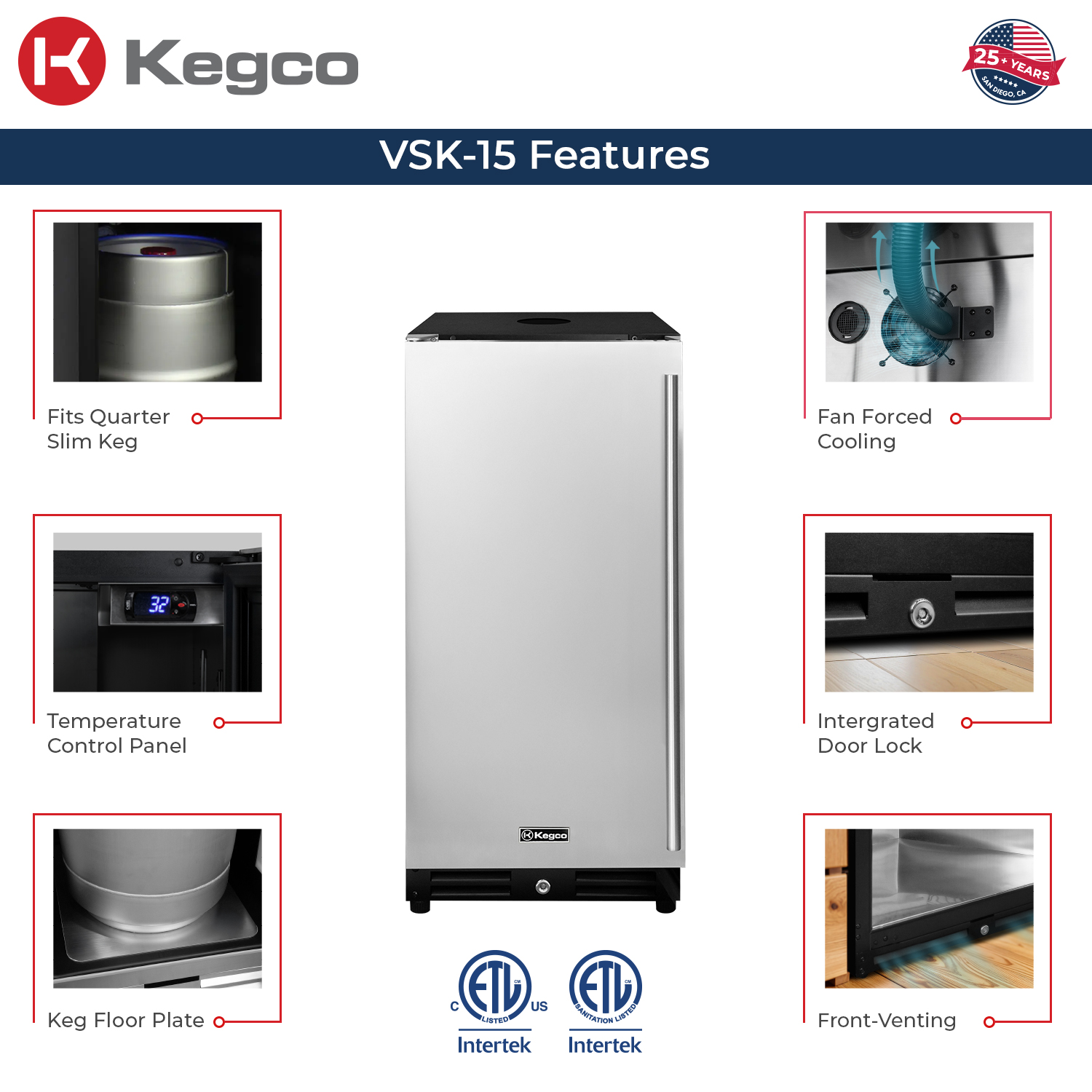 The Kegco VSK-15 boasts a wide temperature range. Dispense your beer or other beverage at an ice-cold 32°F. With an adjustable range of 32-64°F, you're sure to find the setting that suits your tastes.