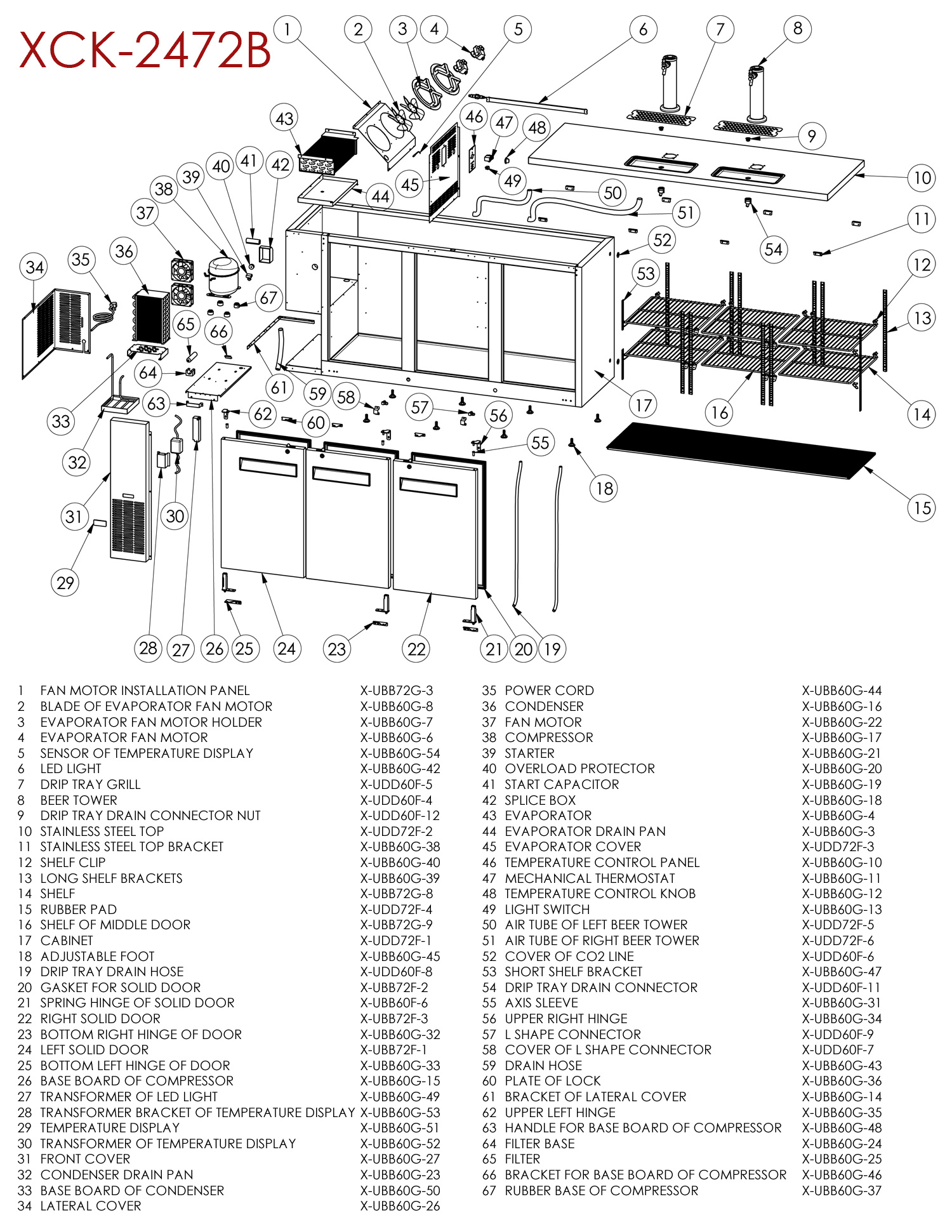 The durably built XCK-2472S is designed to withstand the demands of commercial use. Featuring an attractive stainless steel interior and exterior and a rubber floor mat that reduces the shock of the heavy kegs on the stainless steel floor, it is sure to provide years and years of reliable performance. Internal lighting conveniently illuminates the cabinet to make adjustments to your dispense system effortless. The hoses inside the cabinet that direct cool air into the draft arm and drain beer from the drip tray to an external drain are efficiently tucked out of the way. The cooling unit is serviceable from the front of the kegerator, allowing the kegerator to be used in both freestanding and built-in applications.