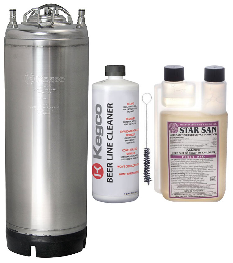 This kit includes a Strap Handle 5 Gallon Keg, a 32 oz. bottle of beer line cleaner, a 16 oz. bottle of Star San sanitizer, and a faucet brush to keep your system squeaky clean. Simply mix some of the beer line cleaner and water in your keg and run it through your lines like you're pouring a beer to remove protein and mineral deposits from the tubing. Sanitize your kegs with Star San, the most popular keg sanitizer on the market. It is non-toxic, odorless, and requires no rinsing when used under 300 ppm.