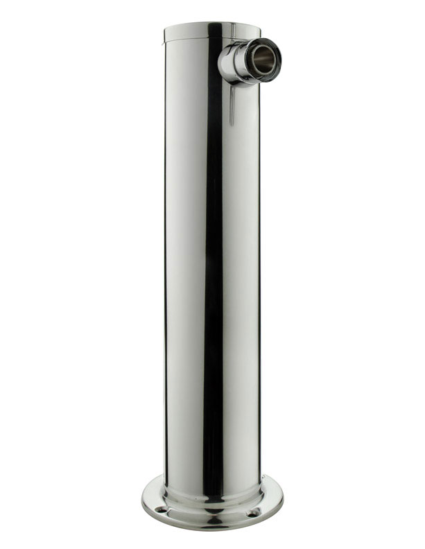 This 3" diameter polished stainless steel draft beer tower features a 14.5" height that makes it 2.5" taller than most standard draft beer towers, giving you enough space to fill normally hard-to-fit growlers and pint glasses. The polished finish looks great and improves corrosion resistance. This Kegco beer tower comes complete with one pre-assembled 5' brewery-approved beer hose with a hex nut and neoprene washer, and is compatible with all standard keg couplers. A mounting gasket and four screws are included for easy mounting.