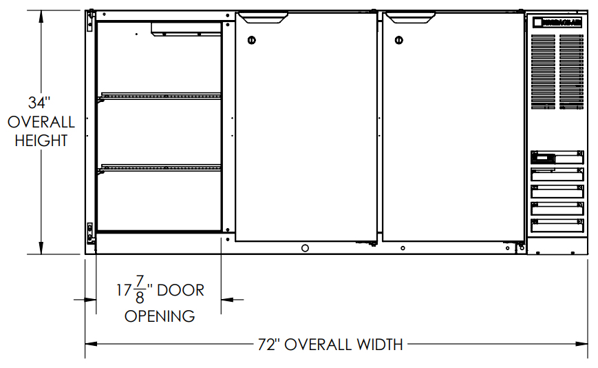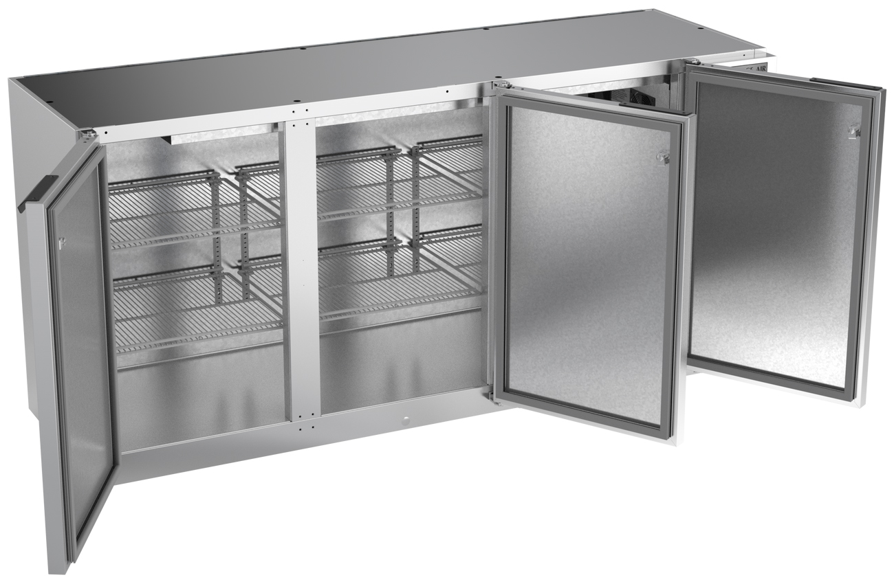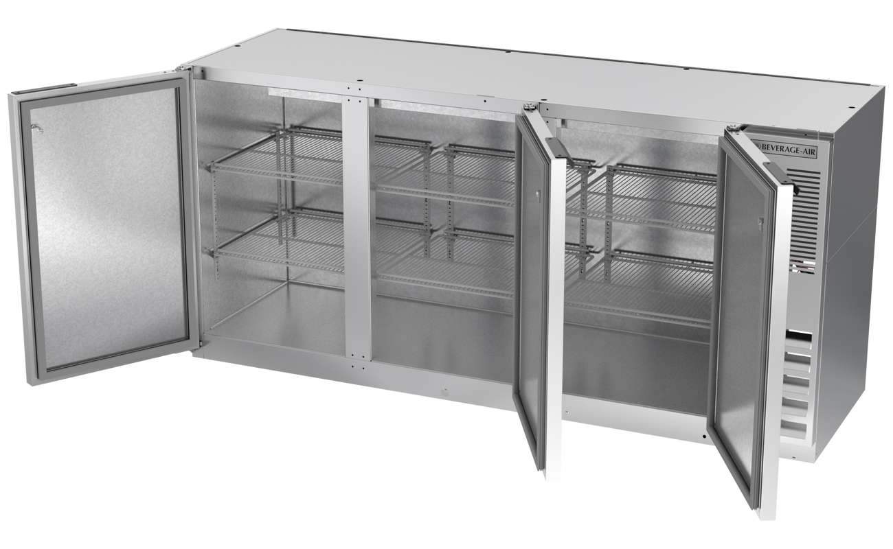 Beverage-Air 72" Wide Stainless Steel Food Rated Solid Doors Back Bar