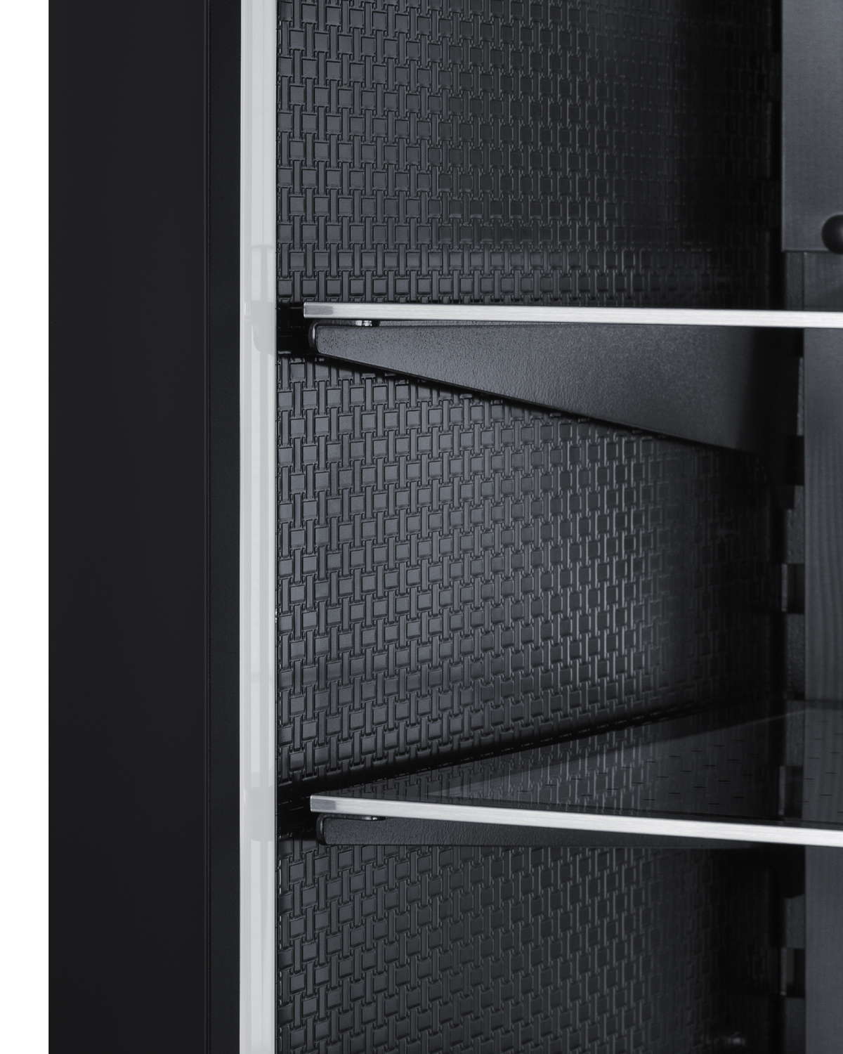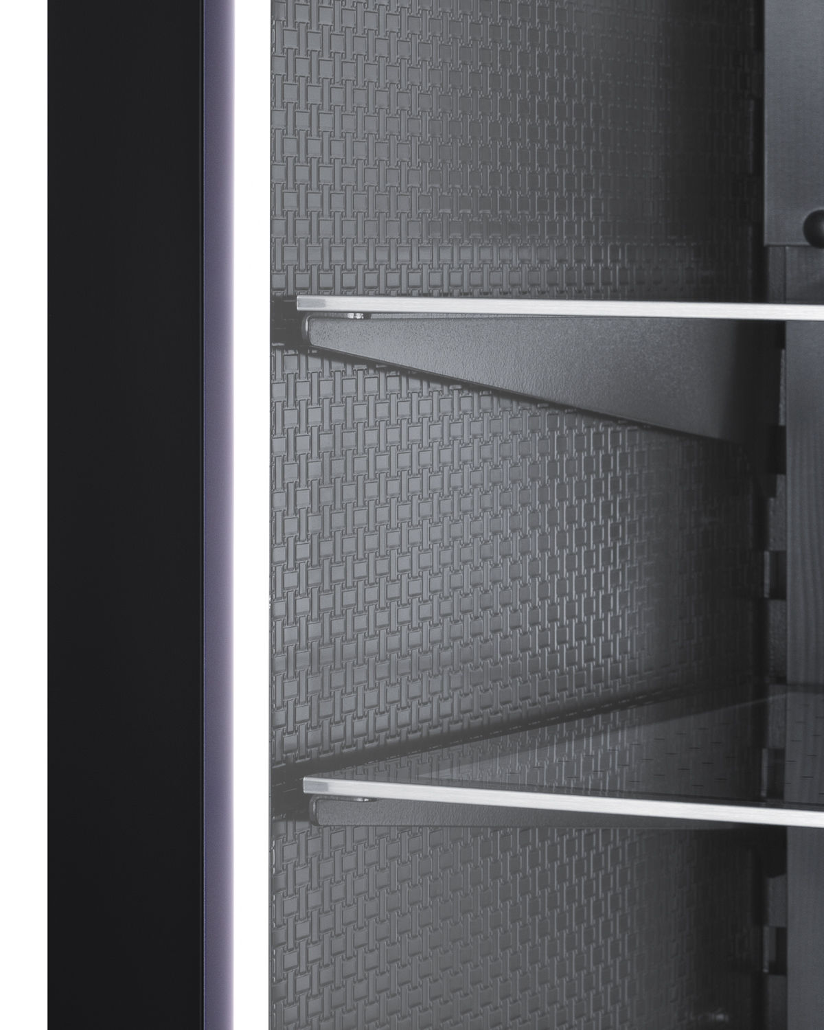 Gently tinted door Attractive tinted glass door provides a complete but protected display of stored contents
