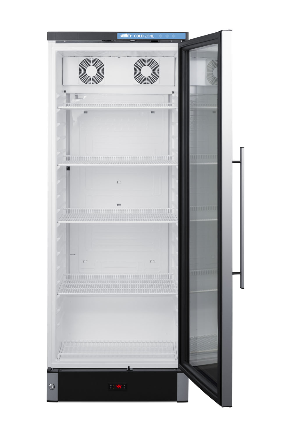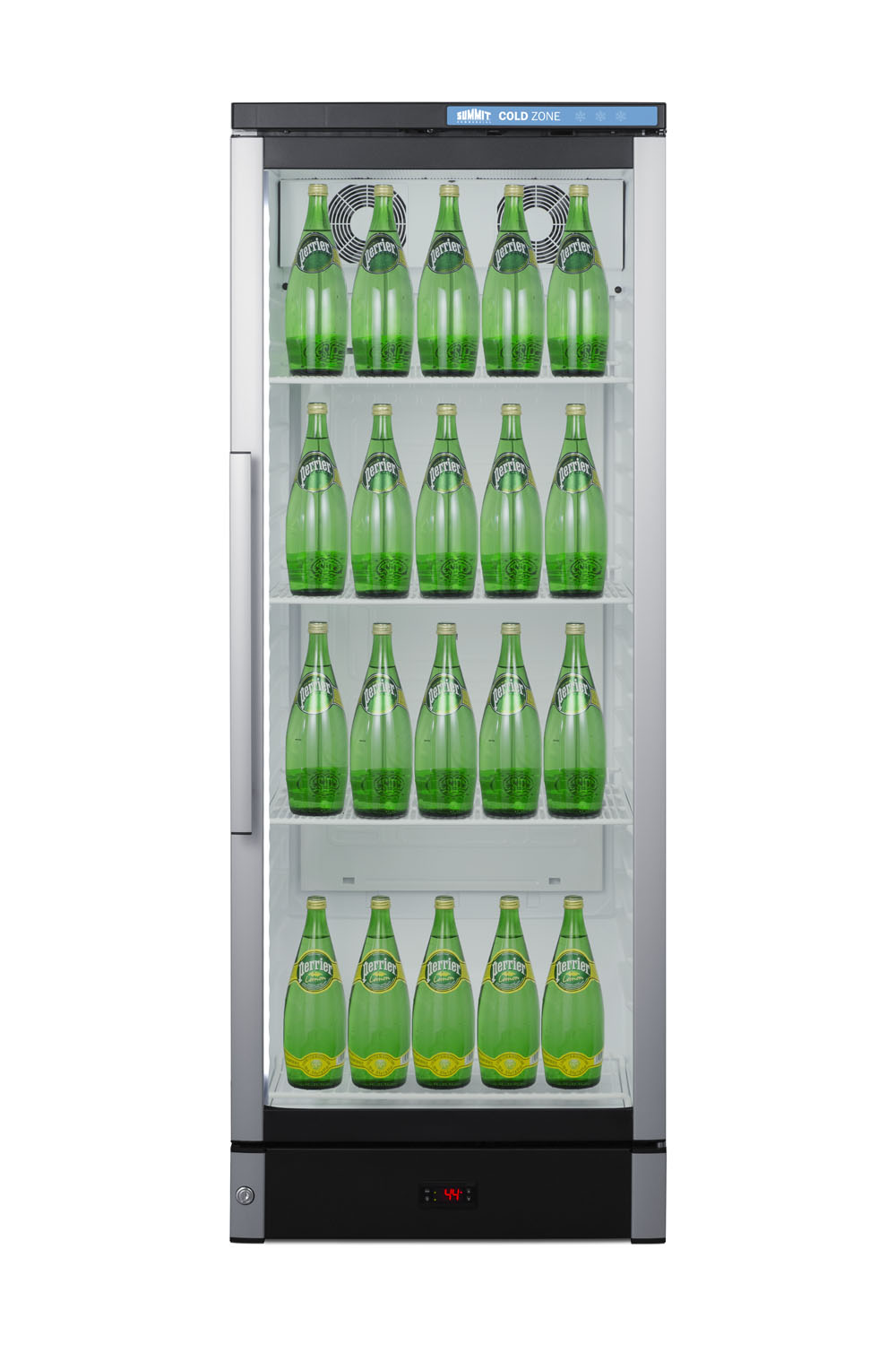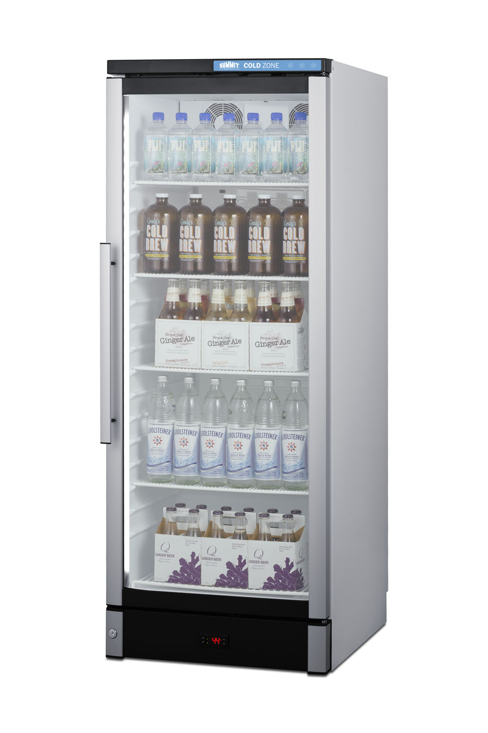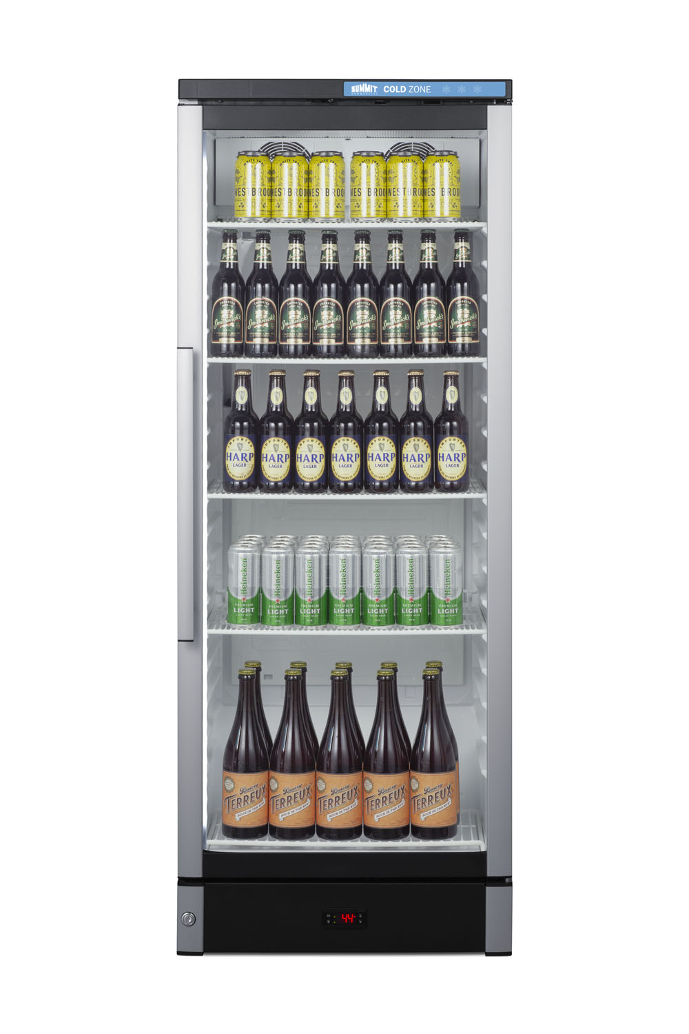 Made in Denmark, model SCR1154 is a 24" wide 9.9 cu.ft. upright beverage merchandiser sized with a space-saving 25.25" depth. The double pane tempered glass door includes built-in LED lighting to create an attractive and energy efficient presentation of stored items, helping to promote impulse buys. A factory-installed lock allows users to secure the door as needed. Digital controls ensure easy and intuitive operation.