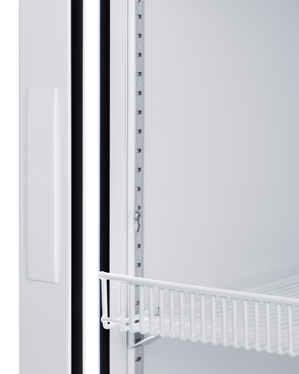 Made in North America, the Summit SCR801G is a slim-fitting all-refrigerator uniquely sized at 21" W x 22" D. It comes in a clean white cabinet to suit any space, with a double pane tempered glass door to provide a full display of stored items. LED lighting inside the door panel helps to boost impulse sales, while the self-closing feature protects beverages by ensuring they're not accidentally left exposed to ambient room temperatures. This unit includes a factory-installed keyed lock for security as needed. It comes with a non-reversible right hand door swing.