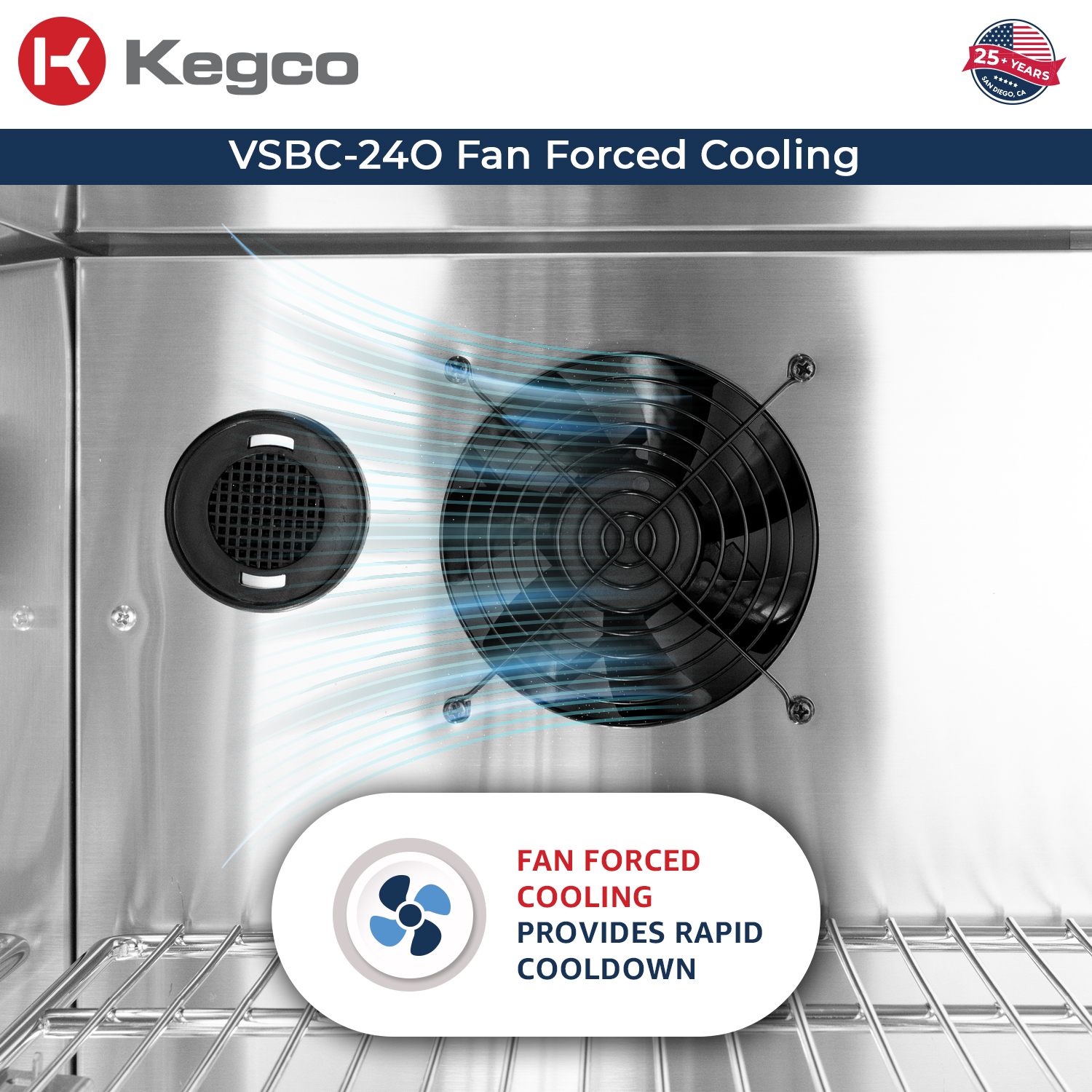 Internal fans circulate the air, providing even, consistent cooling and faster cooldown - 25% More Energy Efficient Design: