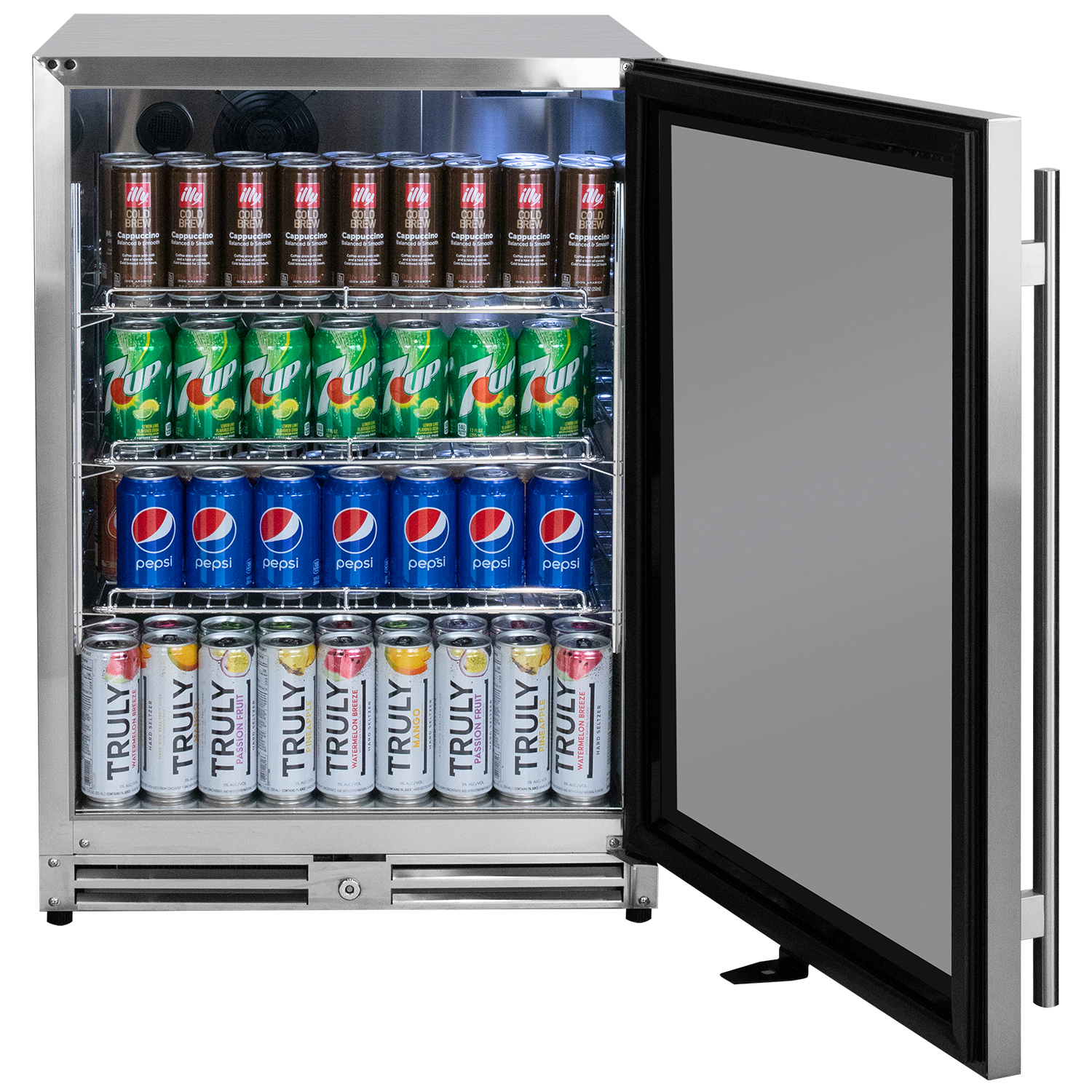 The stainless steel interior offers greater durability than the plastic liners found in many competing models and is easy to wipe clean. The spacious interior provides flexible storage for cans and bottles, making it ideal for keeping sodas and other beverages chilled and organized.
