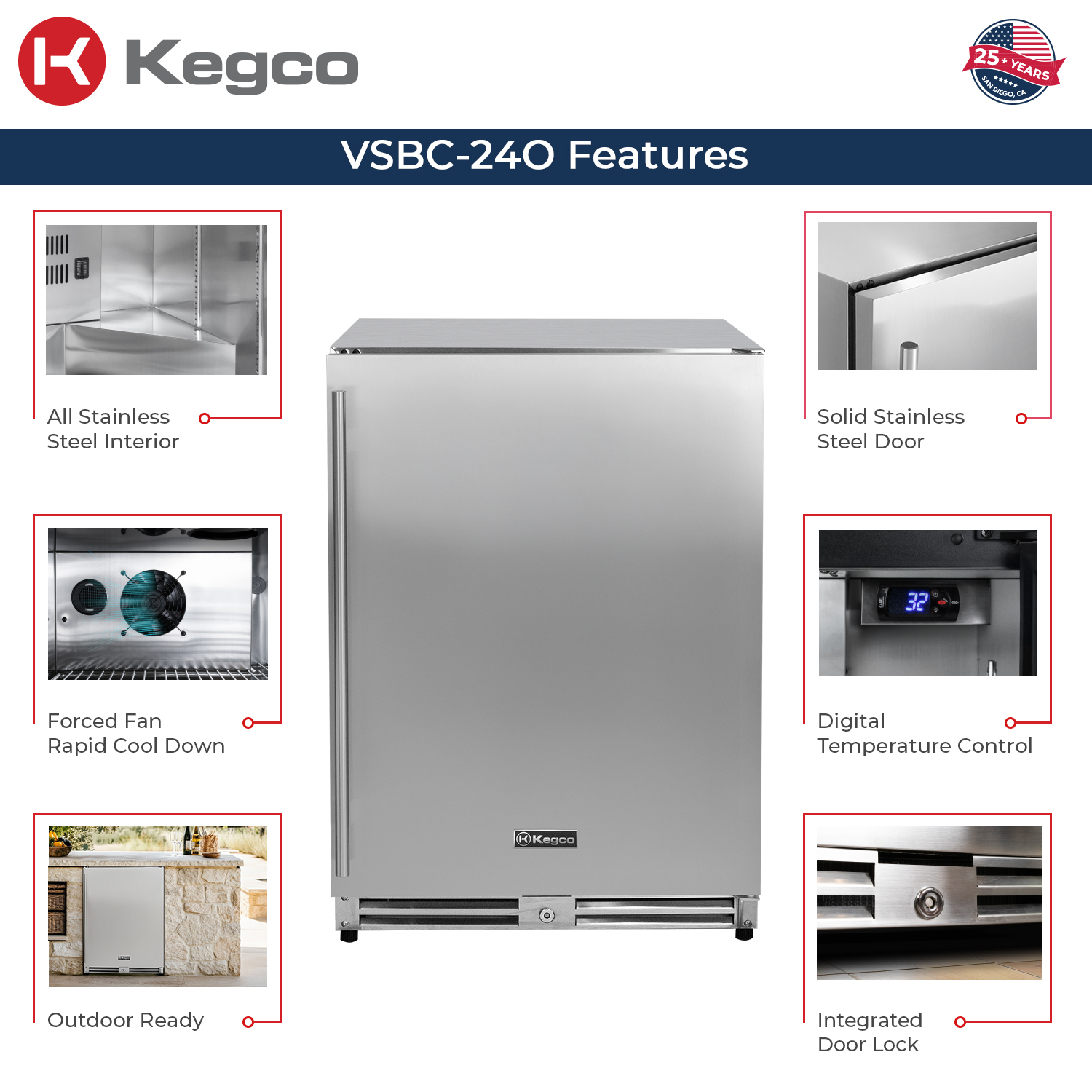 - Scratch & Dent - We currently have a Kegco VSBC-24O-SSR 24" Wide Outdoor Built-In Right Hinge Beverage Center with Solid Stainless Steel Door that was returned to us.
