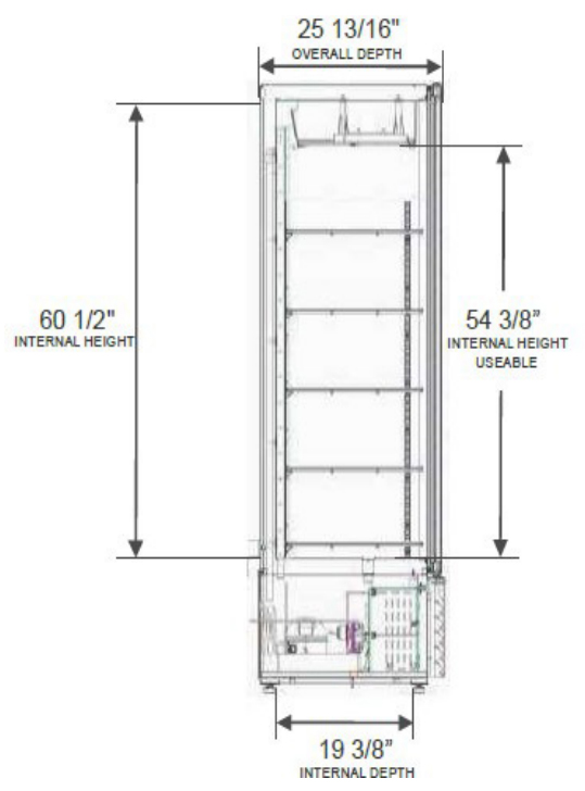 - Internal Height Useable (in): 54-3/8"