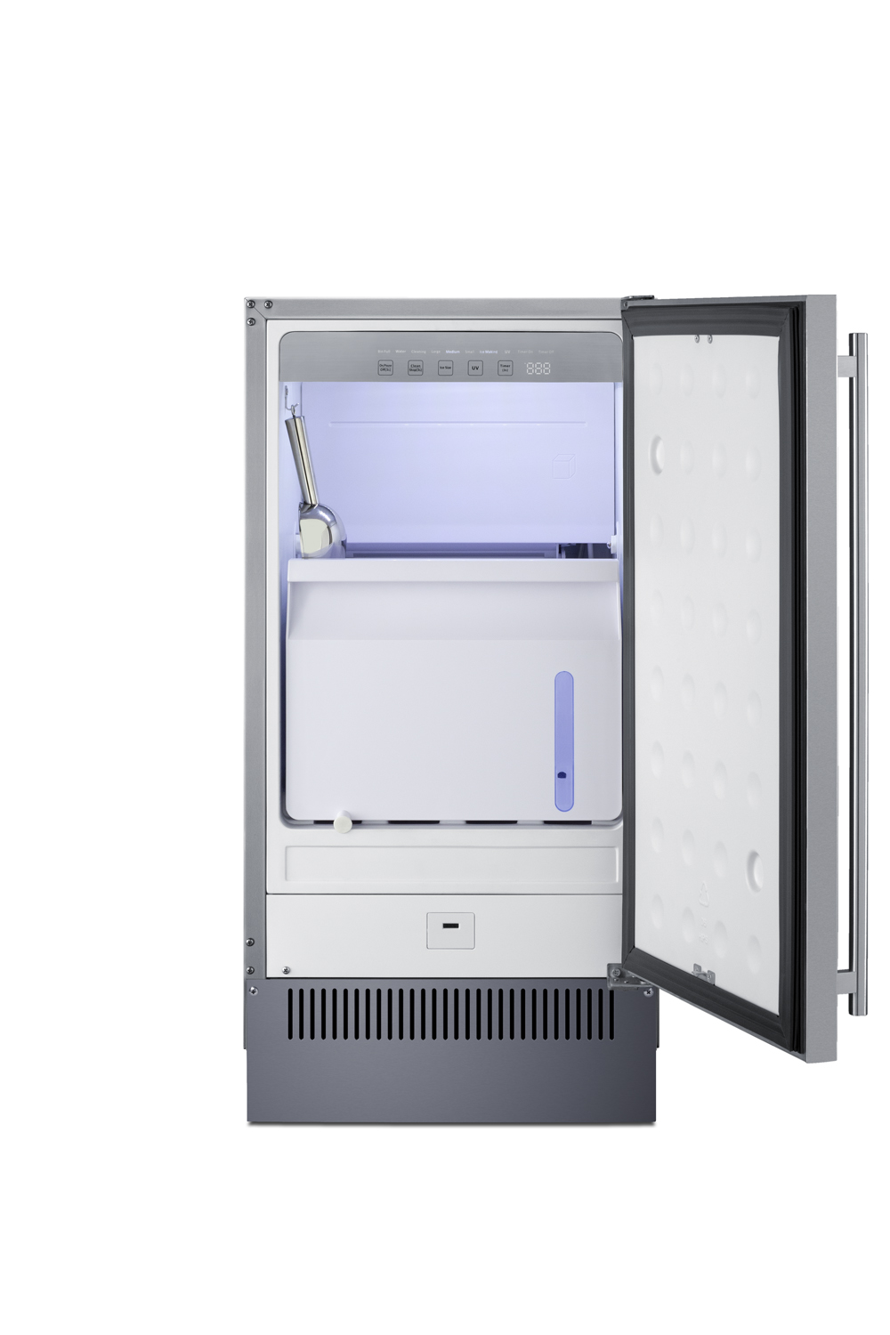 Interior UV light Full illumination of the interior, with UV lighting to help kill germs and ensure safer, cleaner clear ice cubes