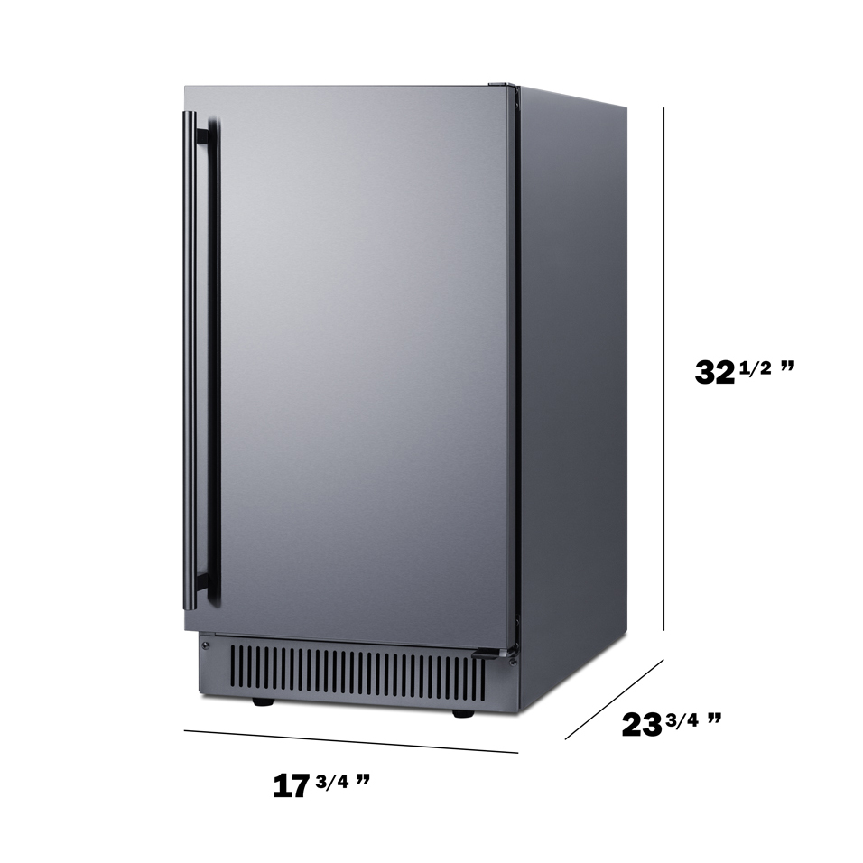 Sized just under 18 inches wide and 32.5 inches high, Summit's BIM182ADA features a front-breathing design for built-in installation underneath ADA-compliant counters. The height can also be raised up to 34.75 inches to accommodate more standard counters. We include a stainless steel kickplate extender to fill the gap. This model comes in a complete stainless steel exterior, with a user-reversible door to best suit your setting. A pro style handle is included. This unit features a sealed back and right angle cord for added space savings.