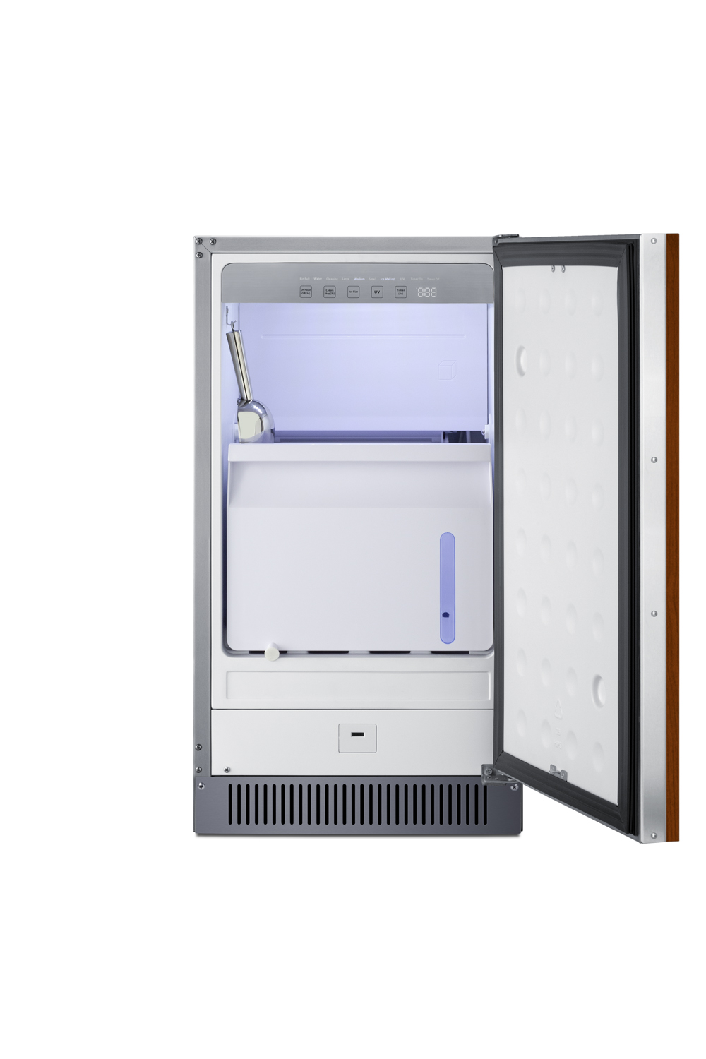 Interior UV light Full illumination of the interior, with UV lighting to help kill germs and ensure safer, cleaner clear ice cubes
