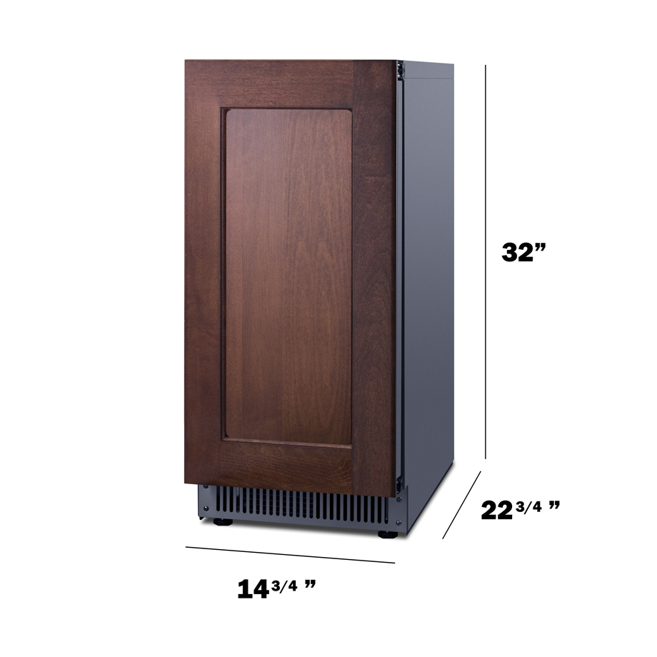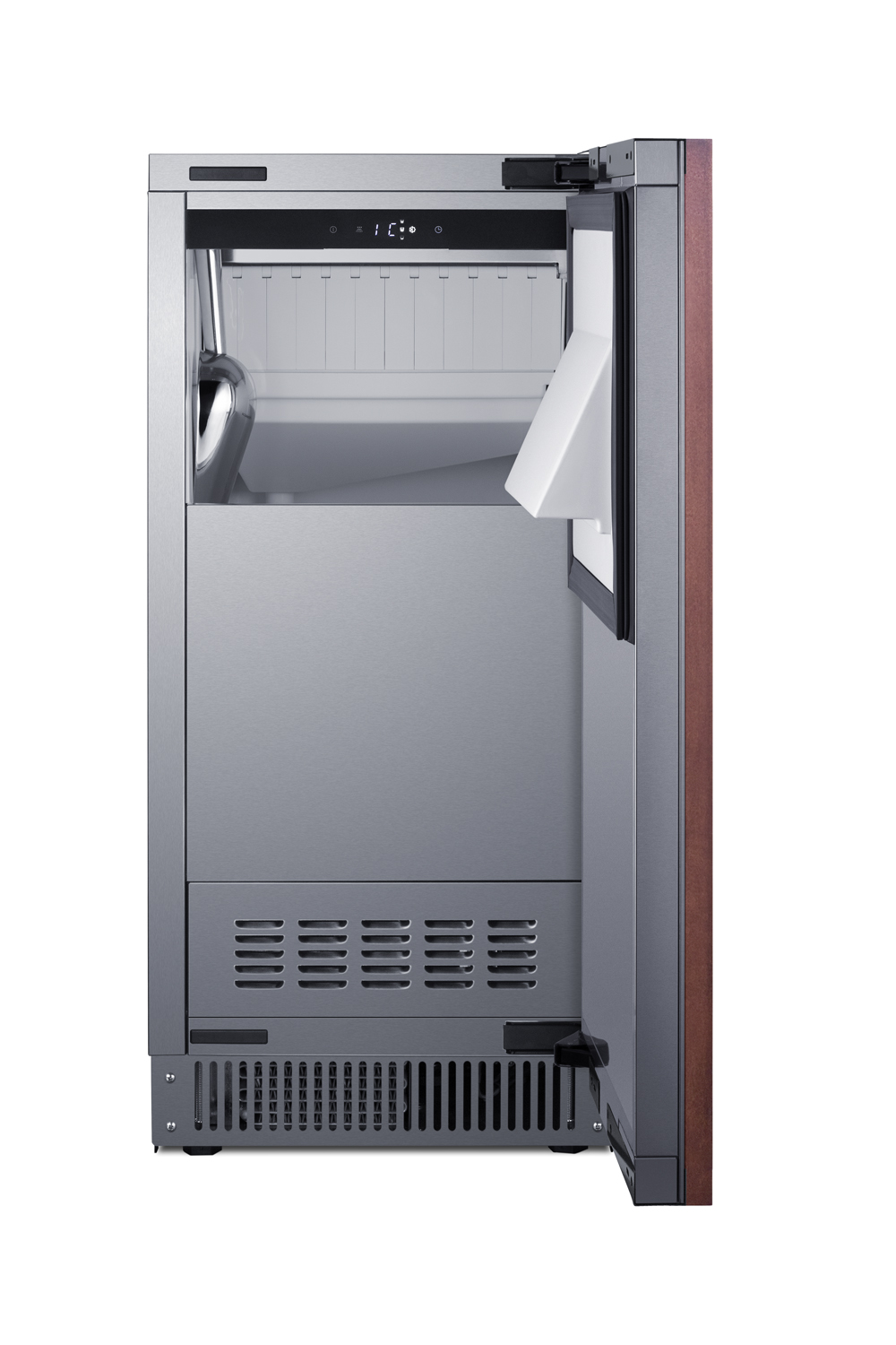 Summit's BIM62ADAPNR is a 15" wide panel-ready icemaker featuring an attractive and durable stainless steel exterior. This icemaker is sized at just 32" high to fit under ADA compliant counters, but the legs can be raised up to 34 1/4" high to accommodate taller spaces. This unit ships with a sliding kickplate that helps fill the extra space if needed. The front-breathing design allows built-in installation under counters, the fully finished stainless steel cabinet allows freestanding use, and the sealed back and right-angle cord help ensure an easy fit. The reversible stainless steel door features a fully articulating European-style hinge to ensure a smoother opening. It includes a 2-piece bracket kit included to allow easy installation of your own overlay panel to create your customer look. This icemaker is unbranded, allowing you to easily integrate it into any kitchen or bar.