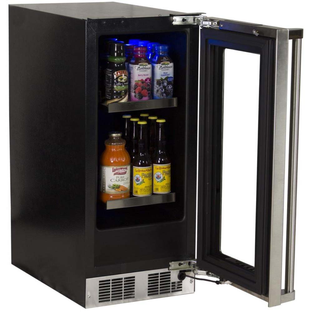 This Marvel unit was designed with professional styling equipped with a stainless steel framed glass door, a sturdy, full-length handle, sleek stainless shelf fronts, and a 4" adjustable stainless steel toe kick