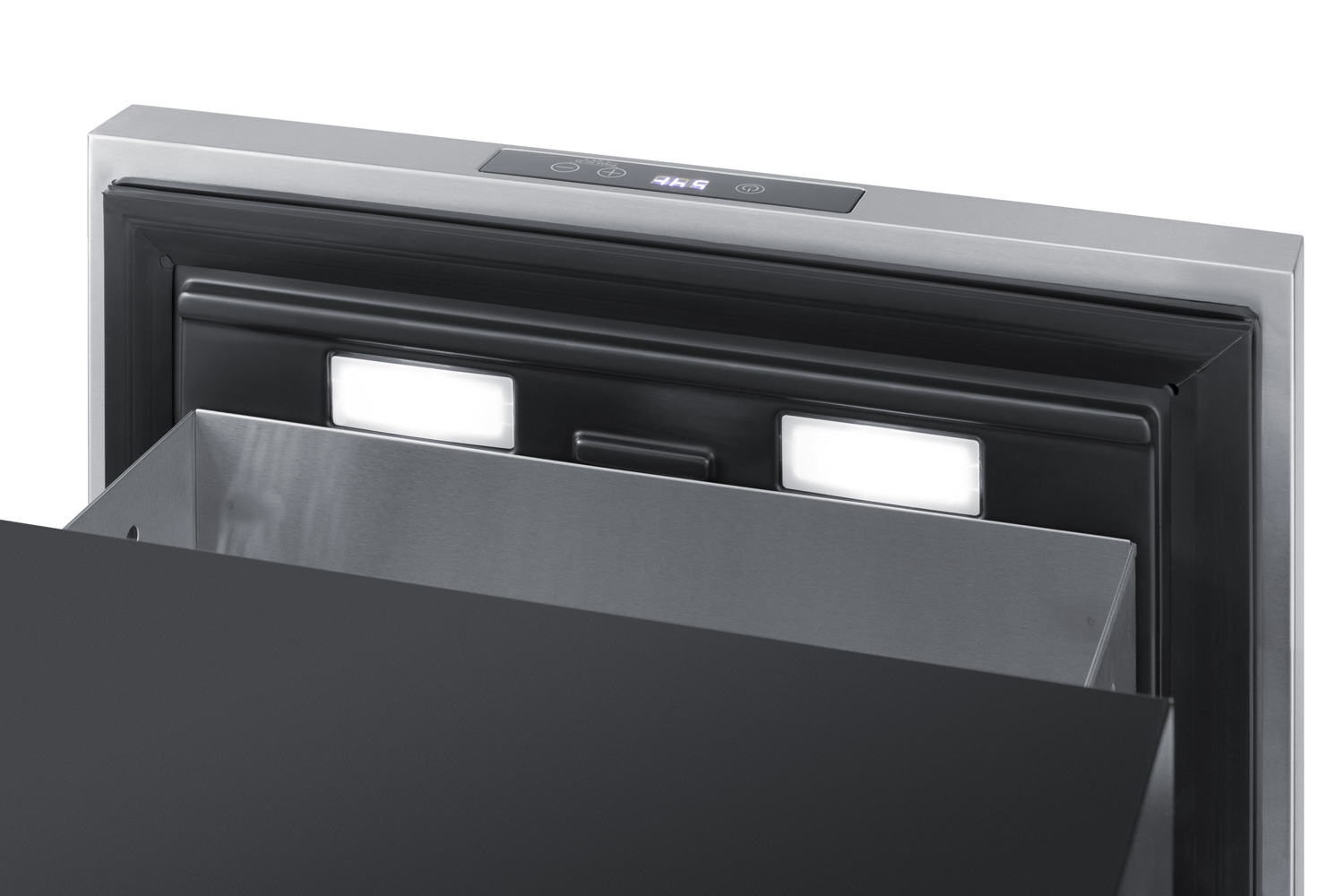 Designed for the storage of wine and beverages, the COOL1D includes intuitive digital controls that let you adjust the temperature between 46 and 68 degrees Fahrenheit. The temperature readout is switchable between Fahrenheit and Celsius to best suit your preference. An audible/visual alarm warns if the drawer has been left open for more than 5 minutes. Two LED lights in a white hue provide attractive illumination when the drawer is opened. Sabbath mode allows you to disable the interior light and digital temperature display as needed.