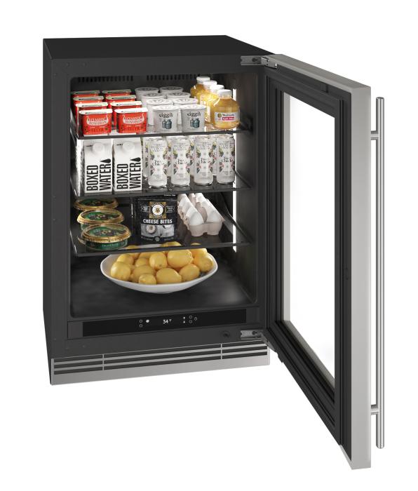 U-Line 24" Refrigerator with Reversible Hinge Stainless Frame Glass Door
