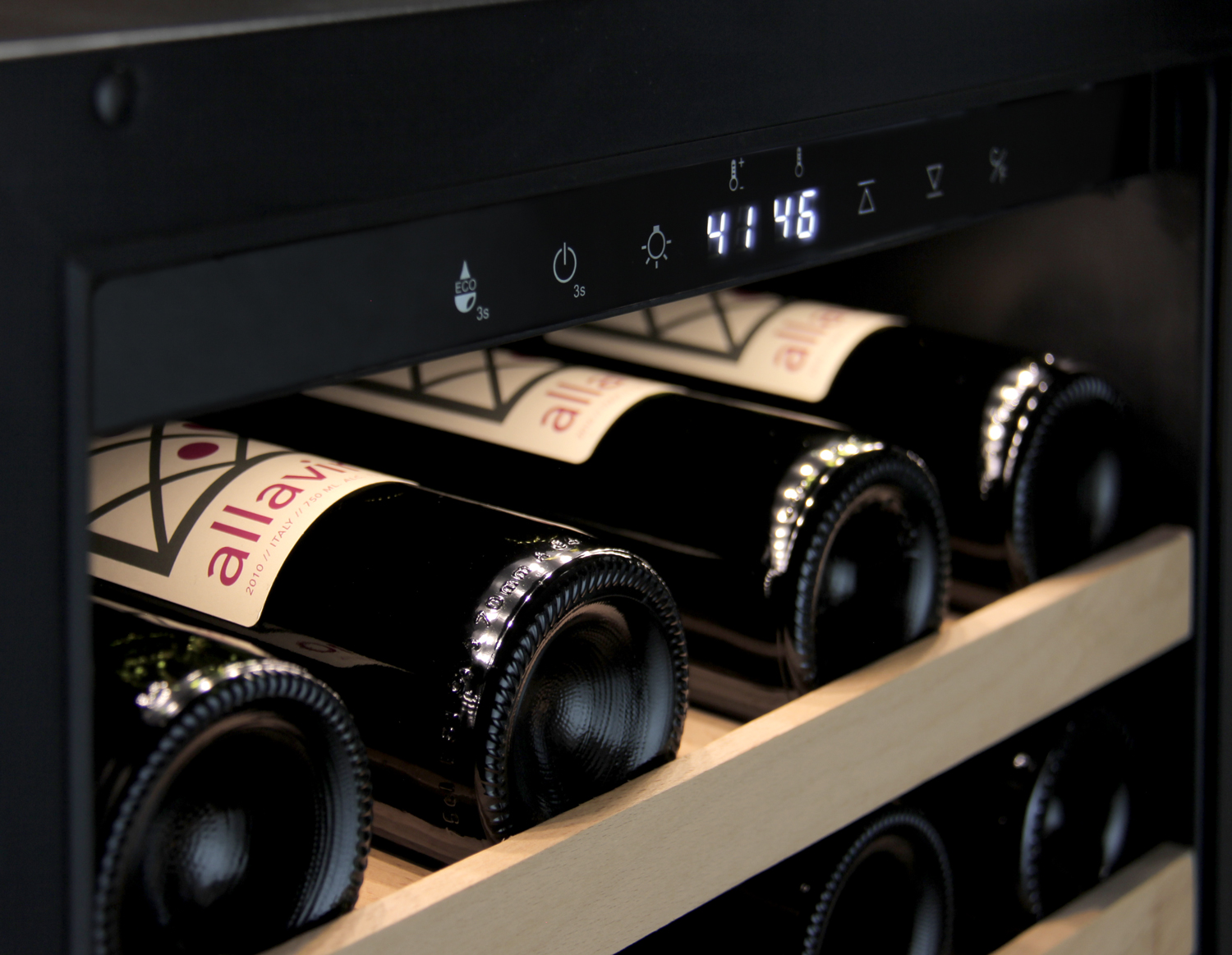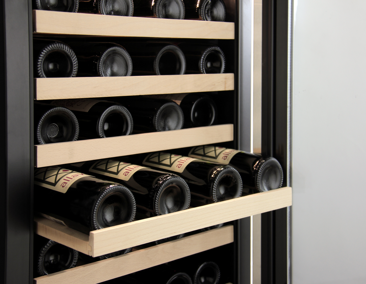 Allavino's wine refrigerator comes equipped with 6 sturdy wooden wine shelves with slats that gently cradle each bottle