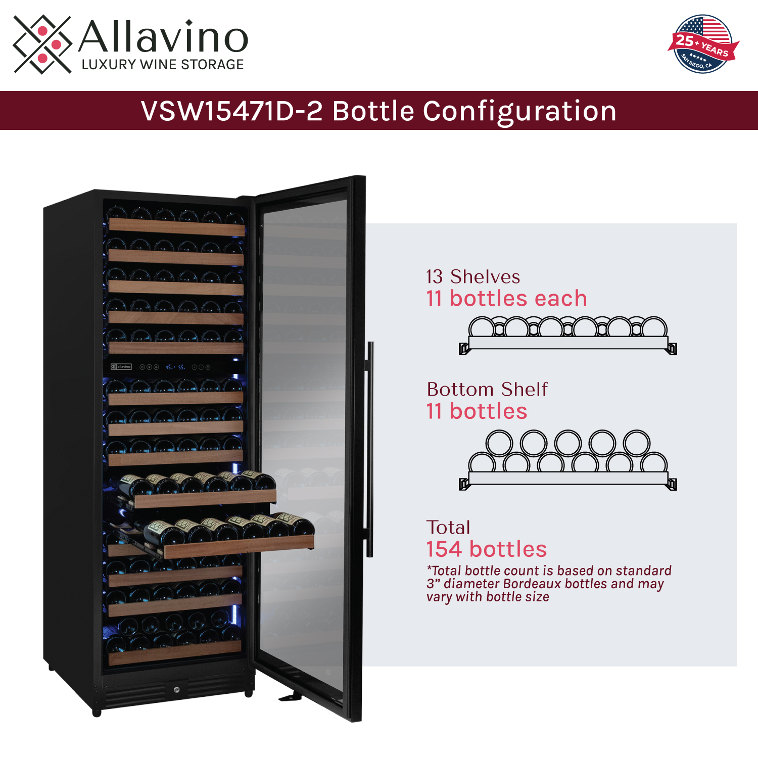 Allavino Reserva Series 154 Bottle 71" Tall Dual Zone Built-in Right Hinge Wine Refrigerator with Black Metal Door $3,931.67 SAVE 45% - $1769.25 $2,162.42