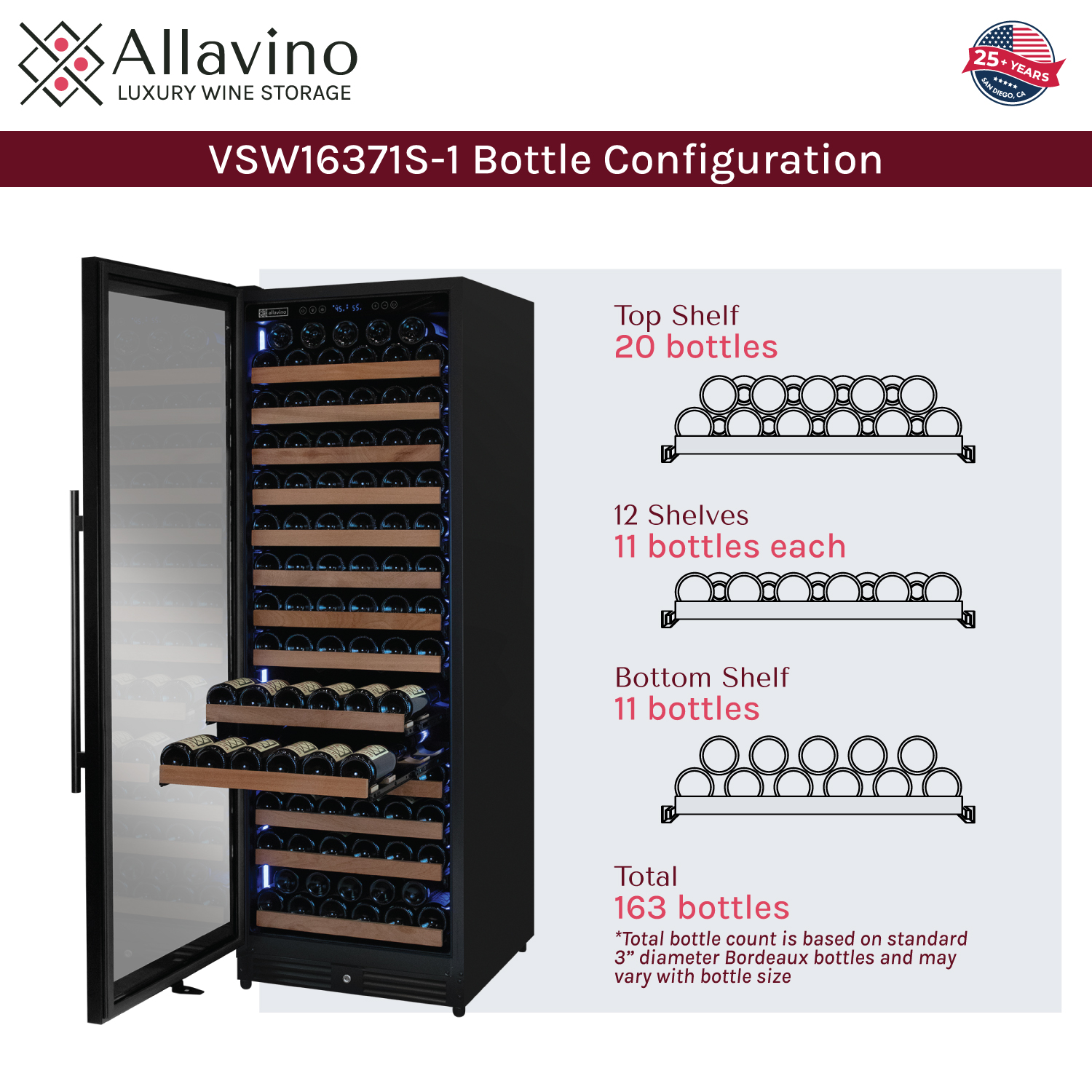 | Wine Bottle Count | Up to 163 Bottles |