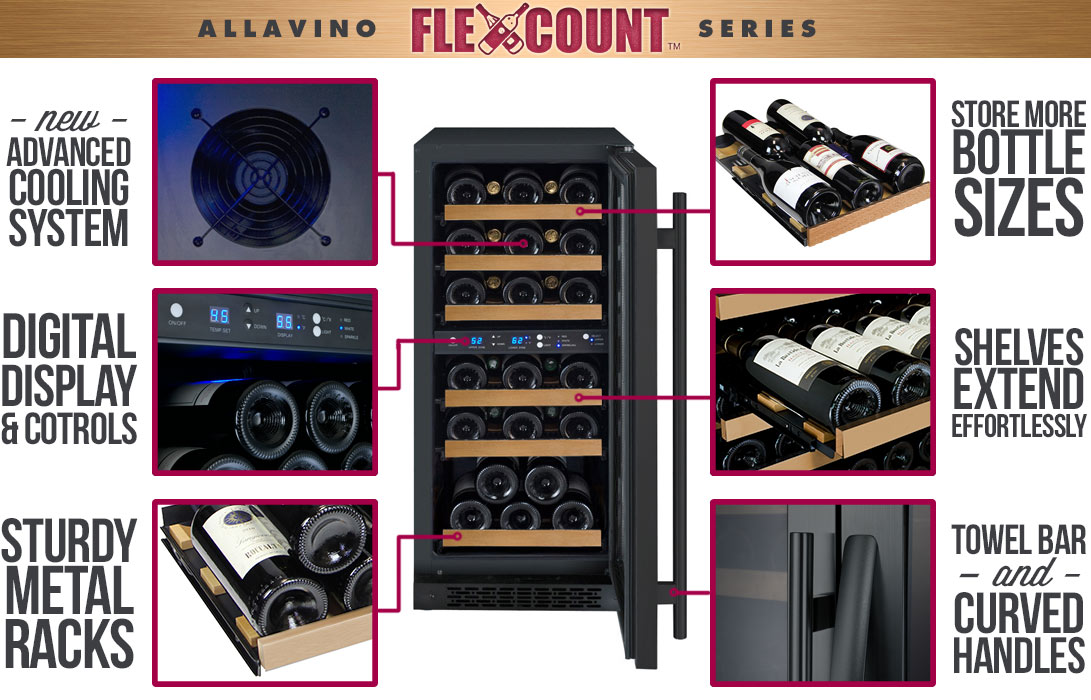 - Allavino's FlexCount Series VSWR30-2BWRN Wine Refrigerator is an elegant and convenient dual zone wine cooler that showcases up o 30 bottles of your favorite wines