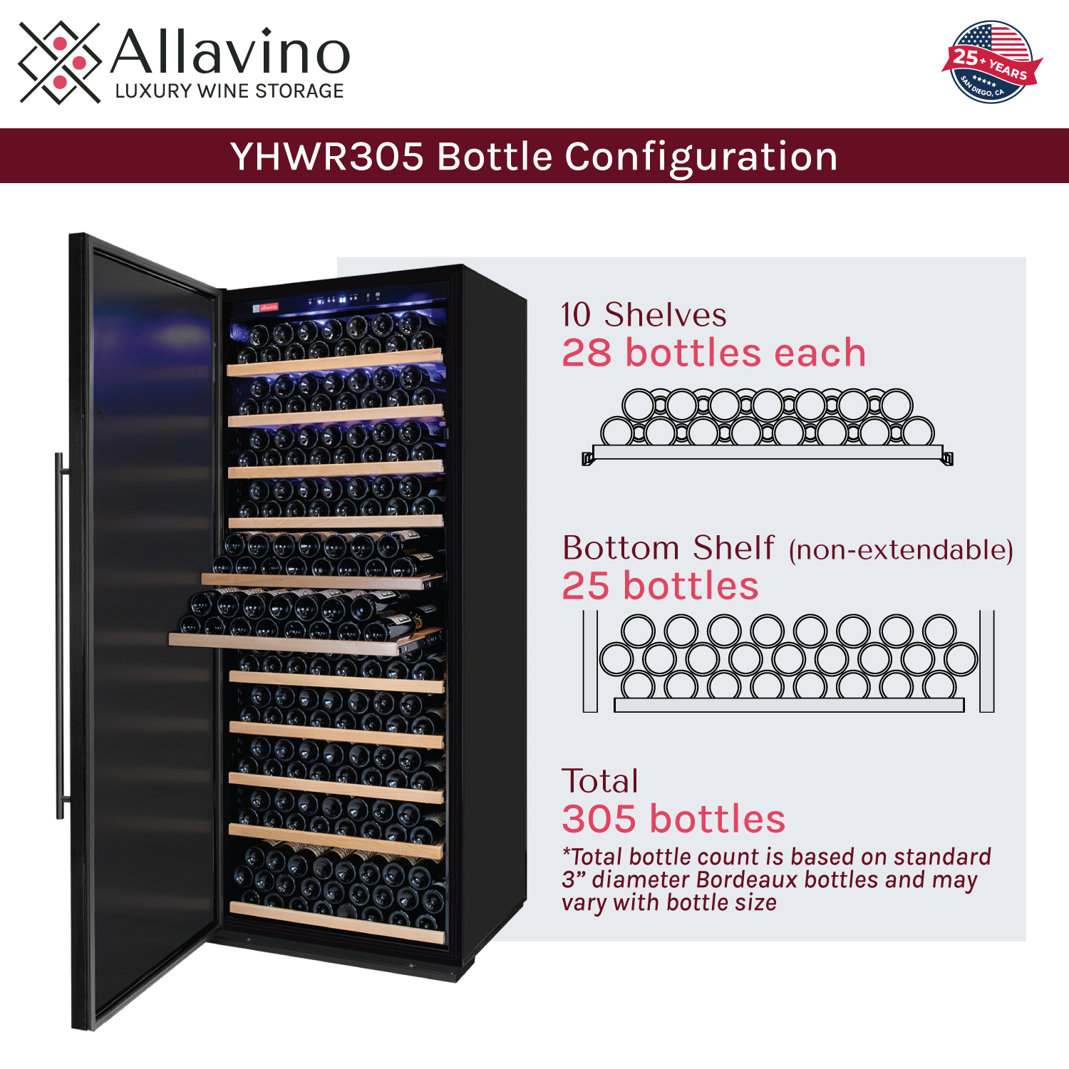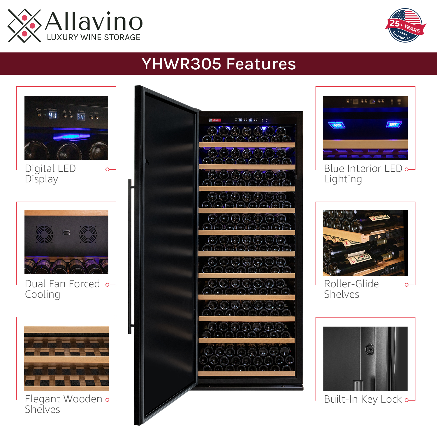 Allavino Vite Series 305 Bottle Single Zone Freestanding Large Capacity Wine Refrigerator with Solid Black Door - Left Hinge