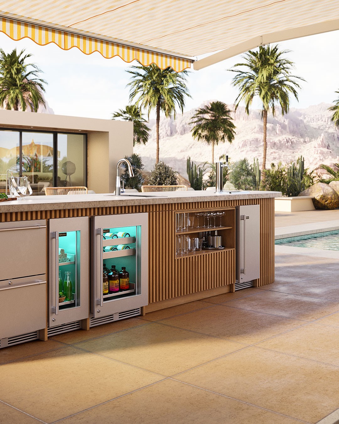 - Beautifully refined for seamless integration, with a sleek cabinet profile and fully concealed, soft-closing hinges for a clean, uninterrupted aesthetic into surrounding cabinetry