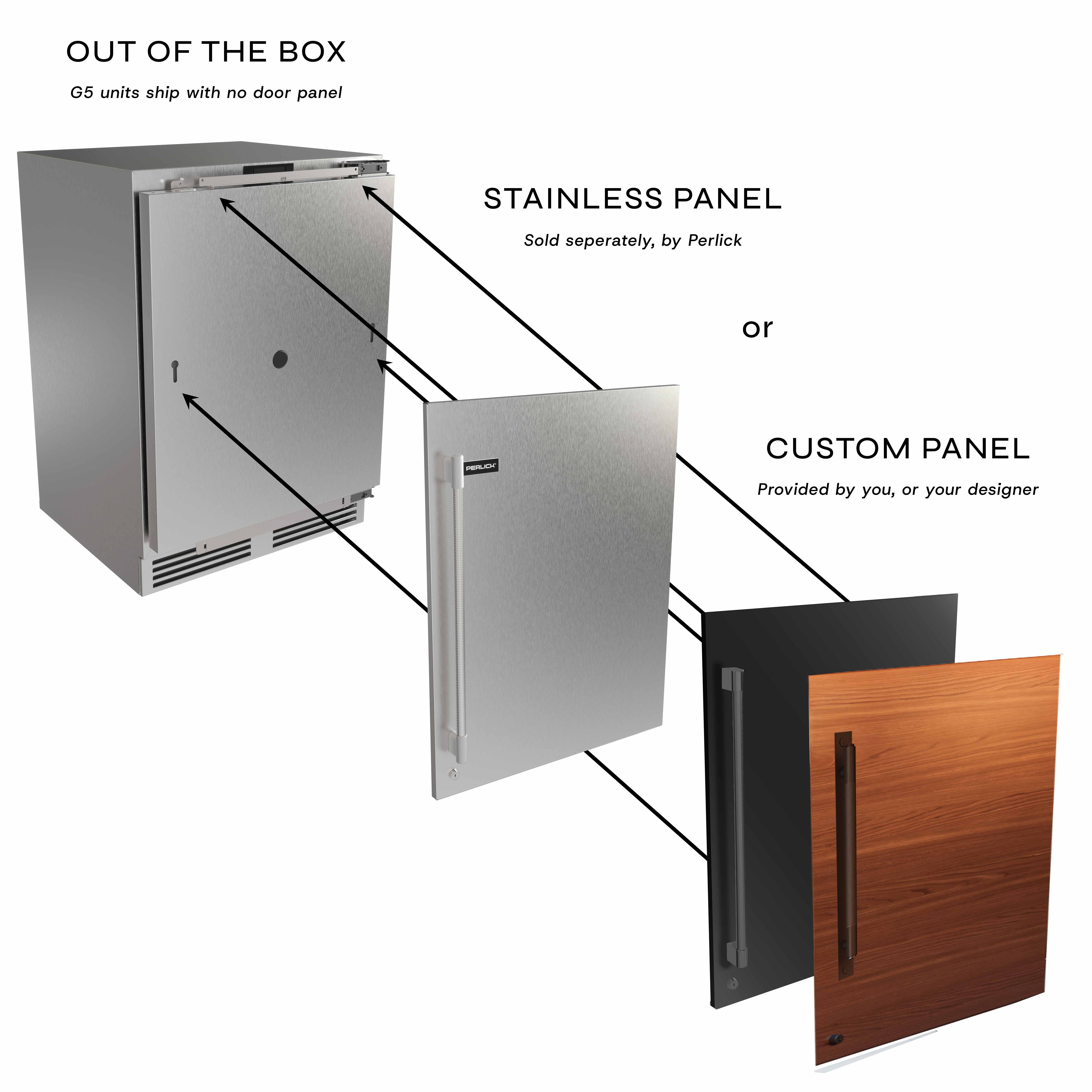 - Accommodates either custom millwork panels or Perlick stainless-steel panels (SOLD SEPARATELY) for a seamless built-in look