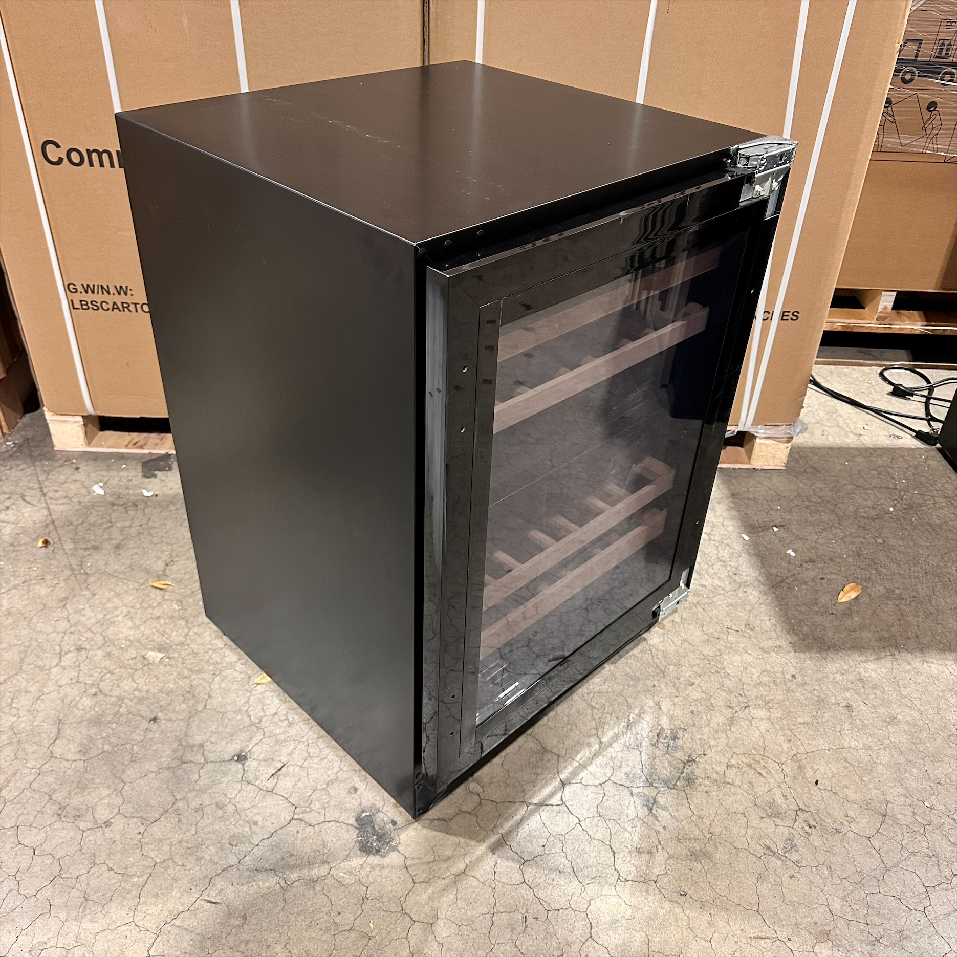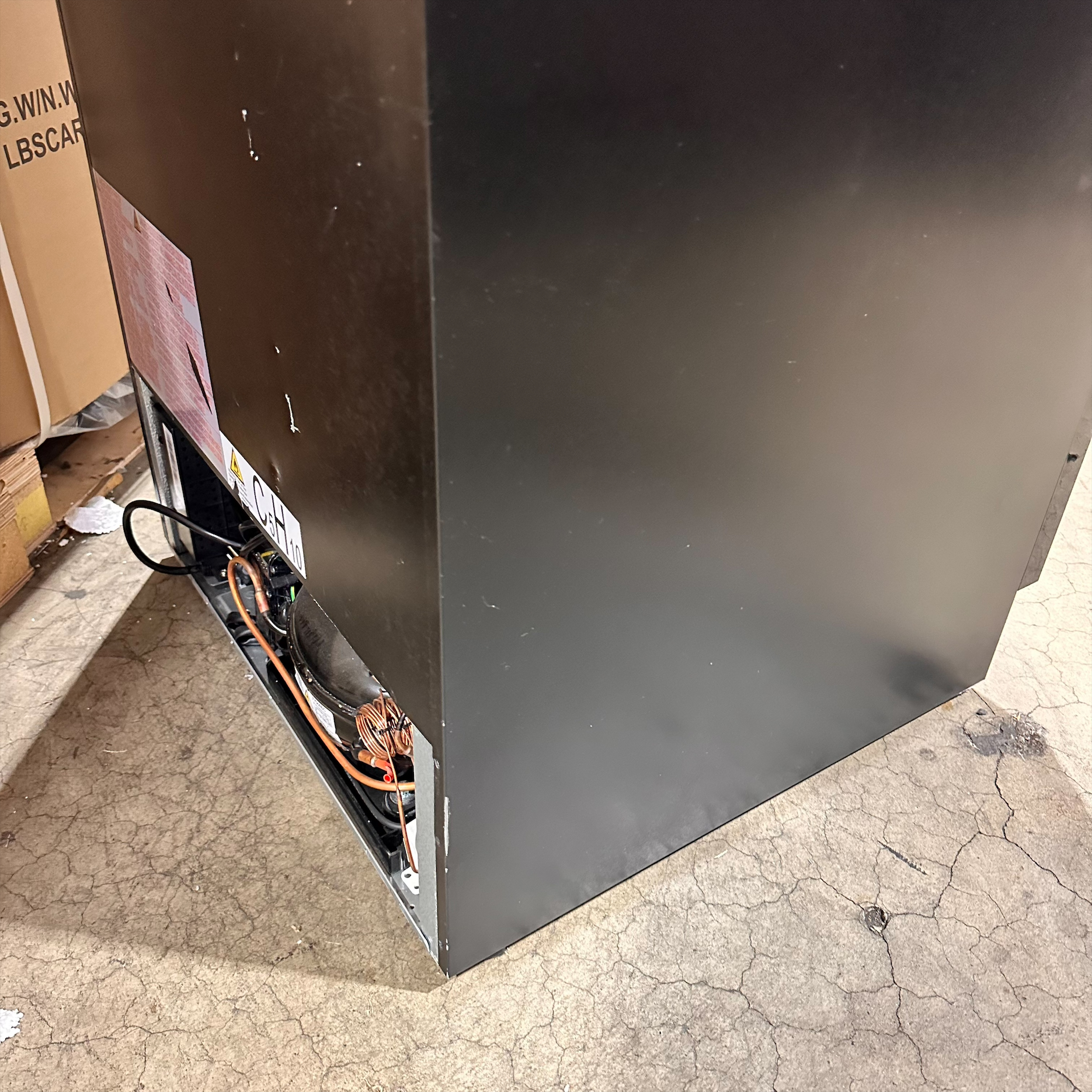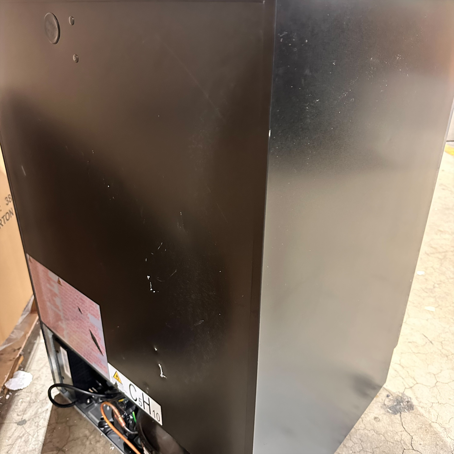 This unit was inspected to ensure it includes all standard parts and manual. It is in good physical condition with the exception of scratches and dents on the left, top, back, door, bottom and plug parts of the unit. (see final photos). Damage does not affect the performance of the unit. Refrigerator has been tested to ensure it is in good working condition with a temperature that was verified down to 44.7°F on the top and 45.5°F on the bottom sone on the lowest setting.