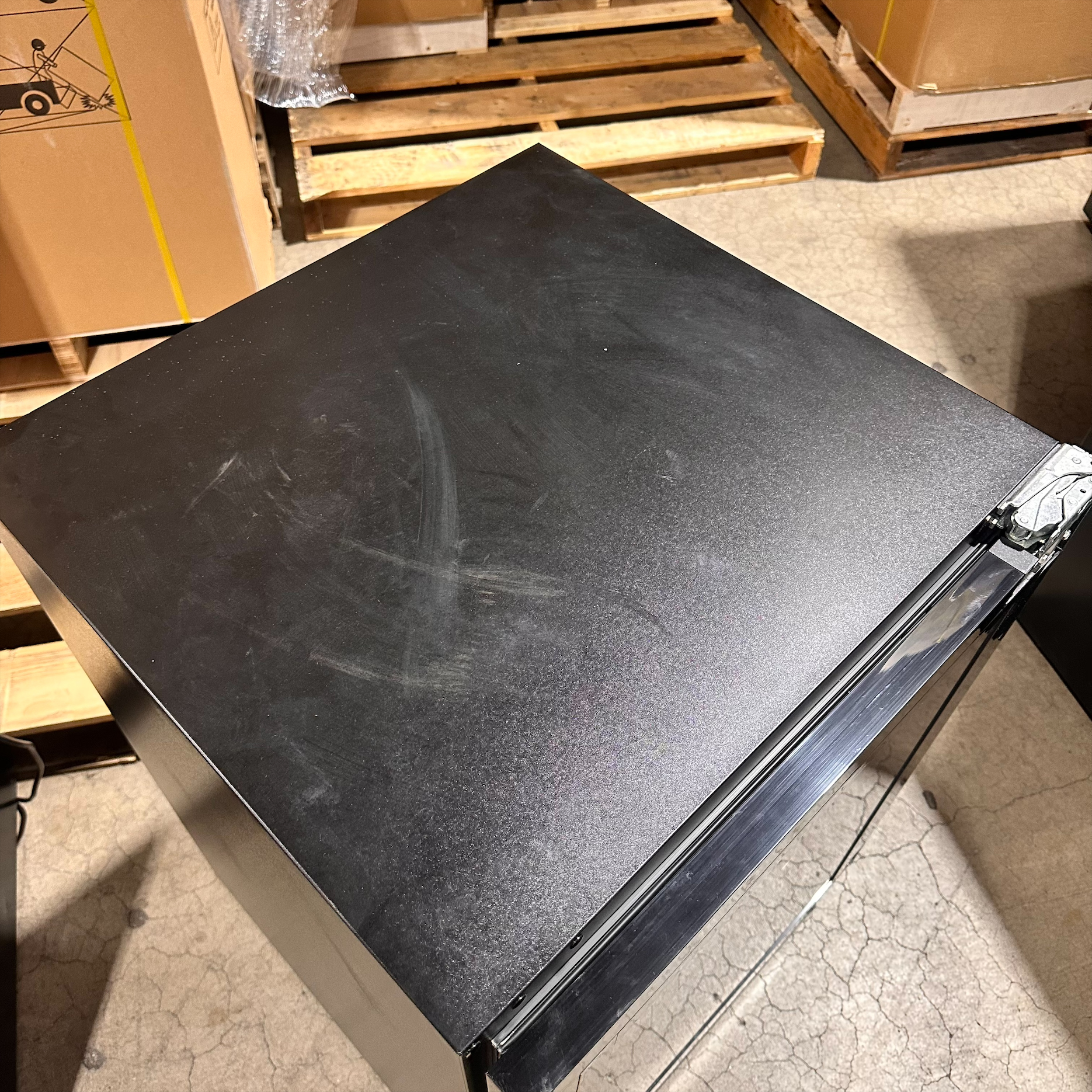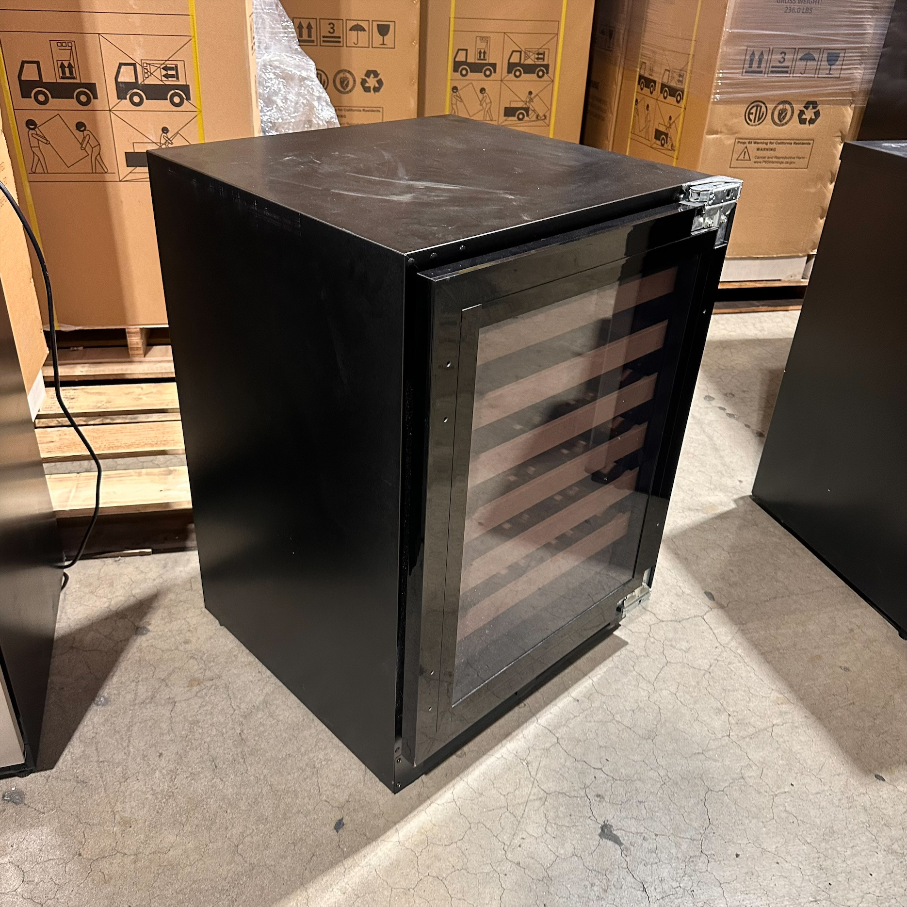 This unit was inspected to ensure it includes all the standard part. It does not include the manual, but that can be downloaded under INFO & GUIDES. It is in good physical condition with the exception of small scratches on the top, left and inside of the door parts the the unit. (see last photos). Damage does not affect the performance of the unit. Wine refrigerator has been tested to ensure that it is in good working condition with a temperature that was verified down to 43.7°F on the lowest setting.