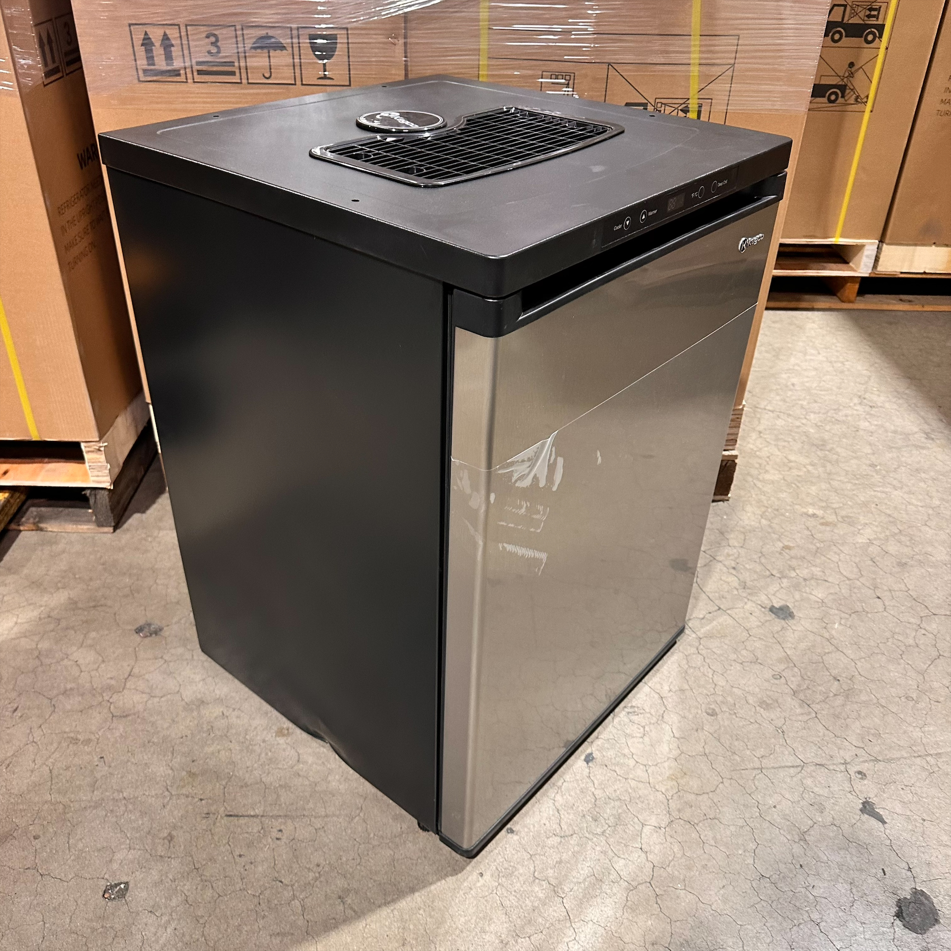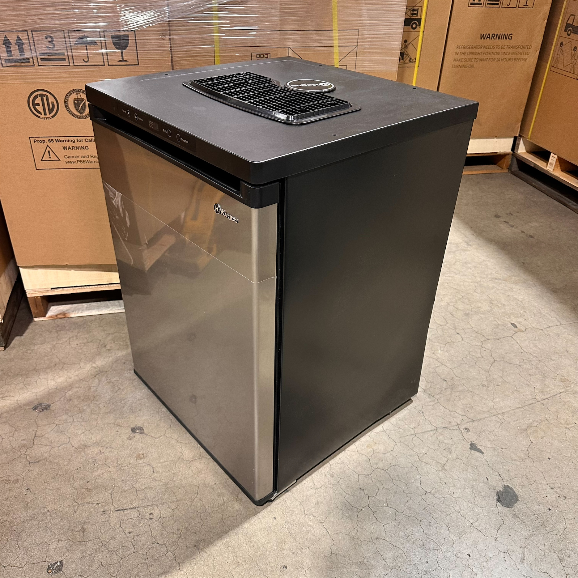This unit was inspected to ensure it includes all the standard parts and manual. It is in good physical condition with the exception of dents and scratches on the left and right sides of the unit. (See Final Photos). Damage does not affect the performance of the unit. Kegerator has been tested to ensure that it is in good working condition with a temperature that was verified down to 34.3°F on the lowest setting.