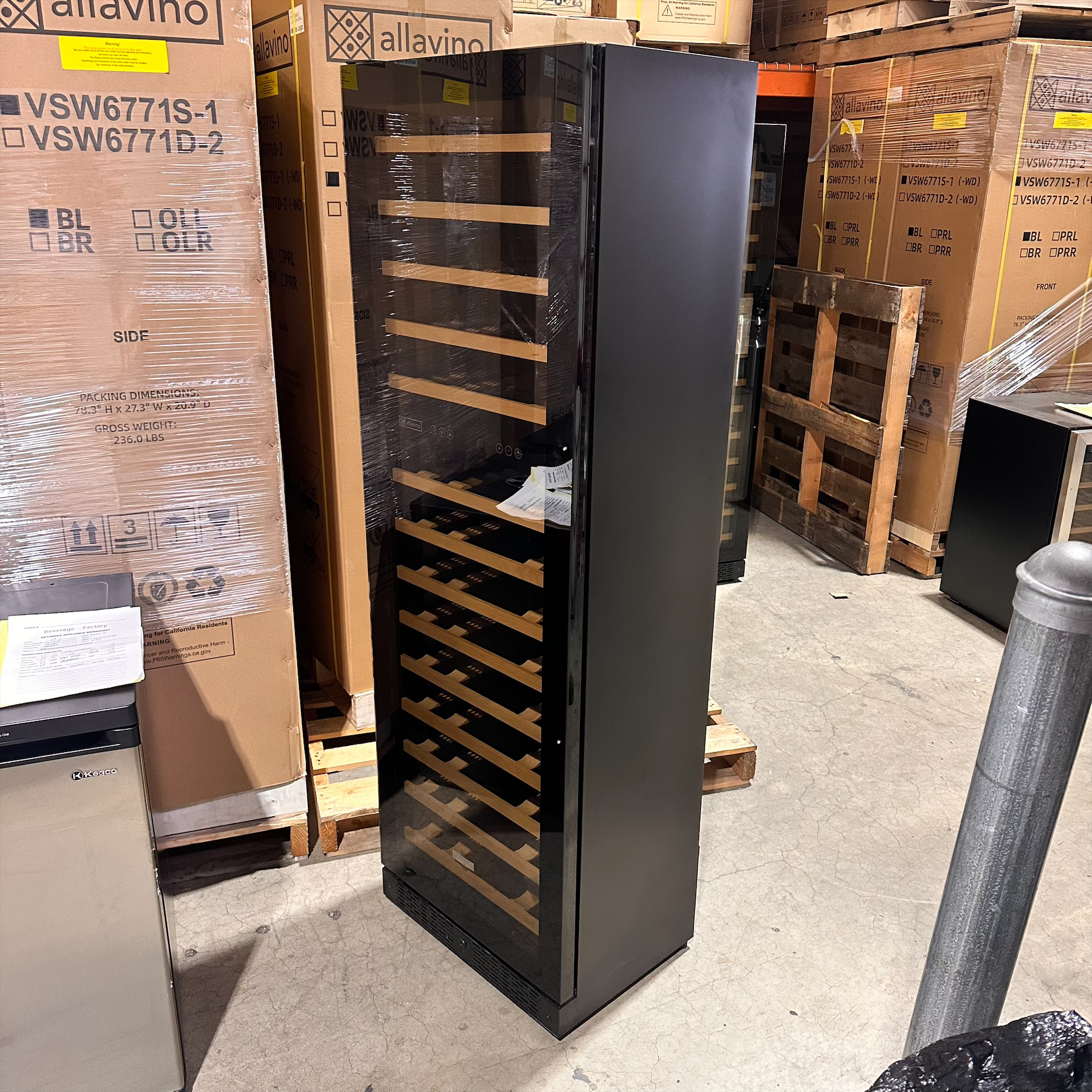 Scratch & Dent - We currently have an Allavino VSW6771D-2BL-WD Dual Zone Left Hinge Black Shallow Wine Refrigerator Console that was returned to us.