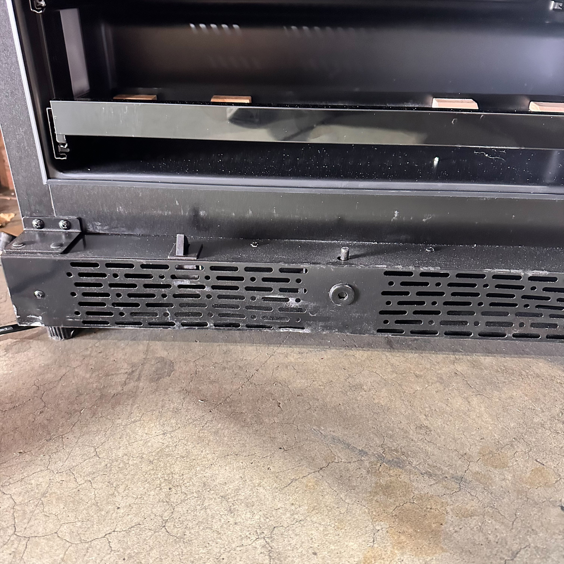 This unit was inspected to ensure it includes all the standard parts. It does not include the manual, but that can be downloaded under INFO & GUIDES. It is in good physical condition with the exception a small dent on the right, grill, top, and back of the unit. The inside back cover behind the shelves has a small crack and the mounting bracket is scratched. (see last photos). Damage does not affect the performance of the unit. Wine refrigerator has been tested to ensure that it is in good working condition with a temperature that was verified down to 41.5°F on the lowest setting.
