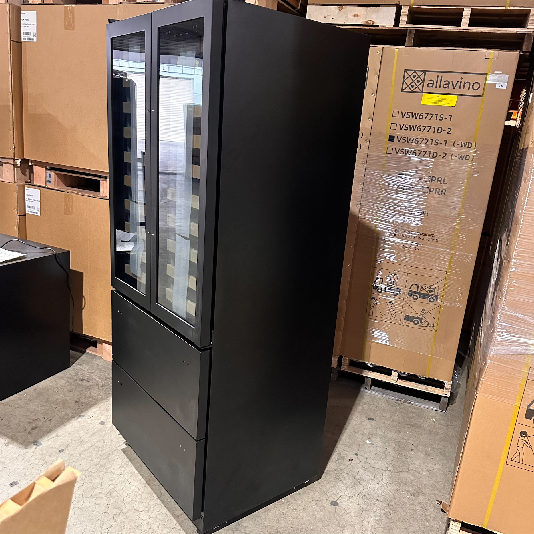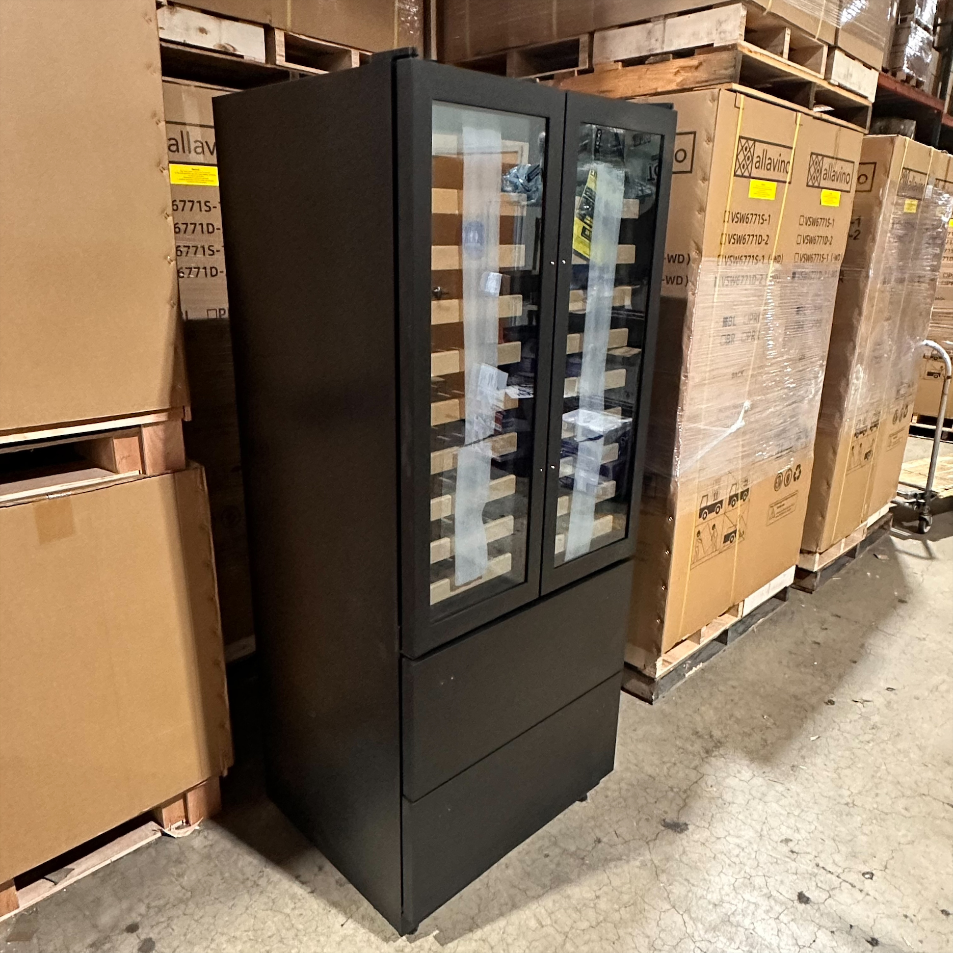Scratch & Dent - We currently have an Allavino YHWR7731FD-B Black French Doors Dual Zone Wine Refrigerator with Two Refrigerated Drawers that was returned to us.