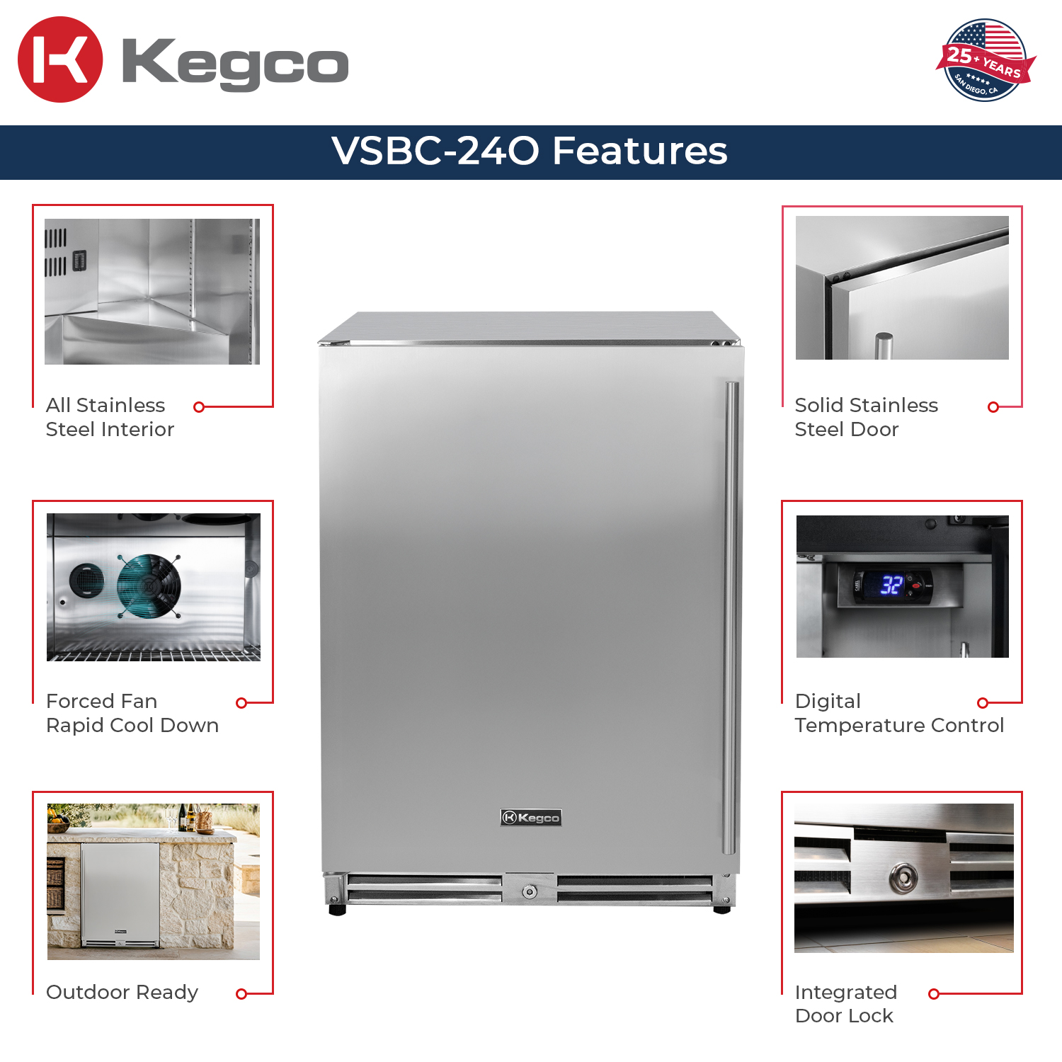 - Open Box - We currently have a Kegco VSBC-24O-SSL 24" Wide Outdoor Built-In Left Hinge Beverage Center with Solid Stainless Steel Door that was returned to us.