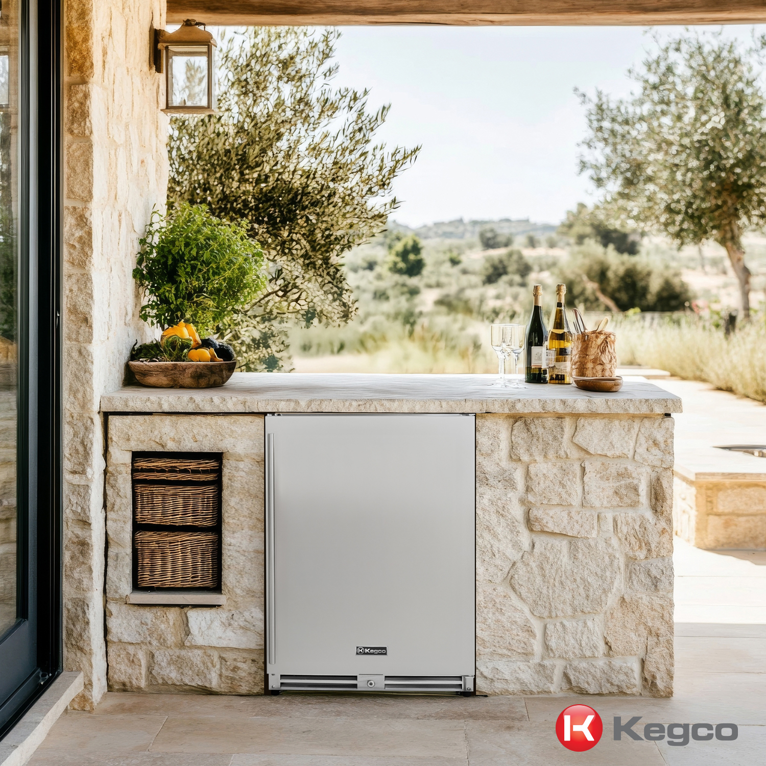 Kegco Open Box - 24" Wide Outdoor Built-In Left Hinge Beverage Center with Solid Stainless Steel Door