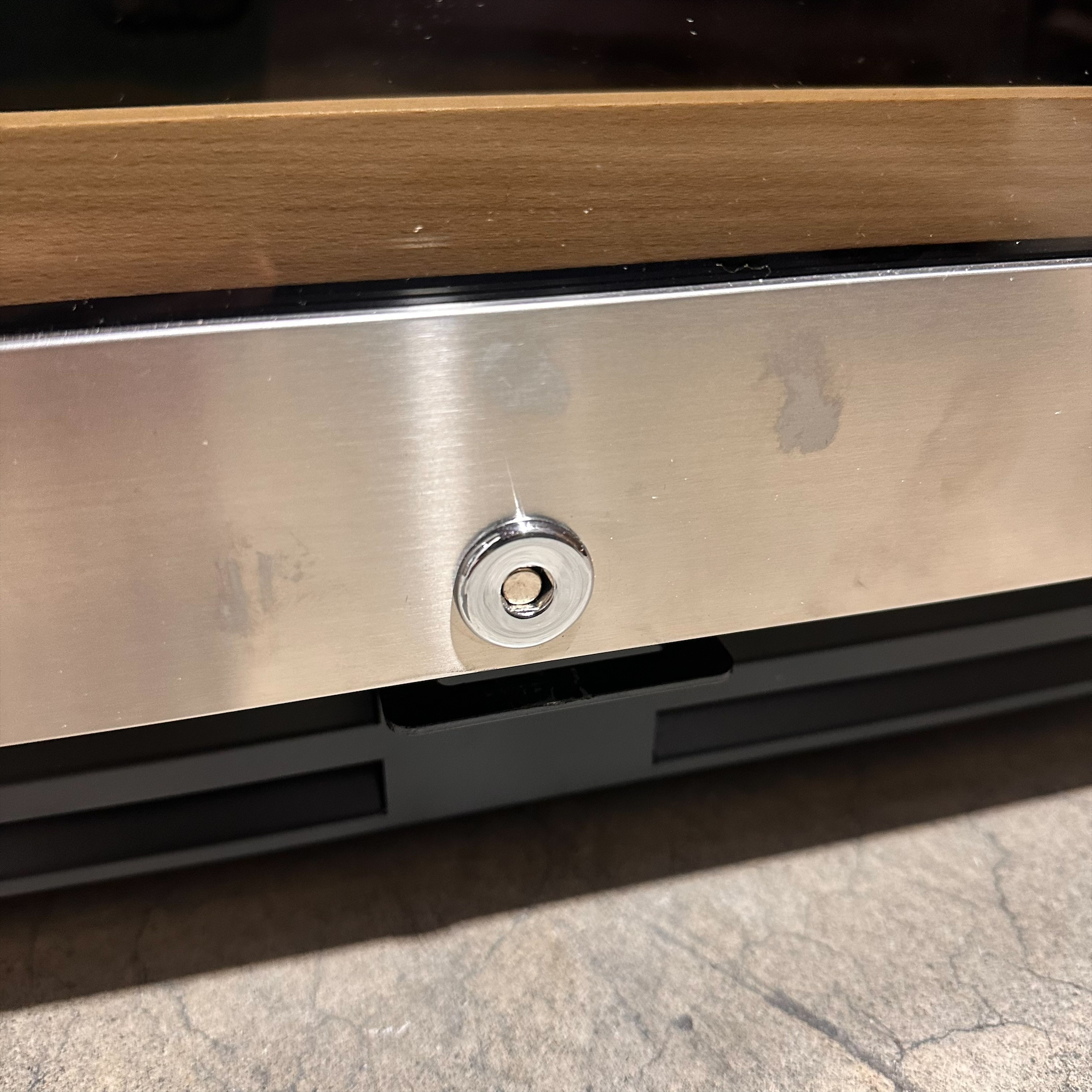 This unit was inspected to ensure it includes all the standard parts and manual. It is in good physical condition with the exception of scratches on the top and near the lock. (see last photos). Damage does not affect the performance of the unit. Wine refrigerator has been tested to ensure that it is in good working condition with a temperature that was verified down to 40.6°F on the top zone and 46°F on the bottom zone on the lowest setting.