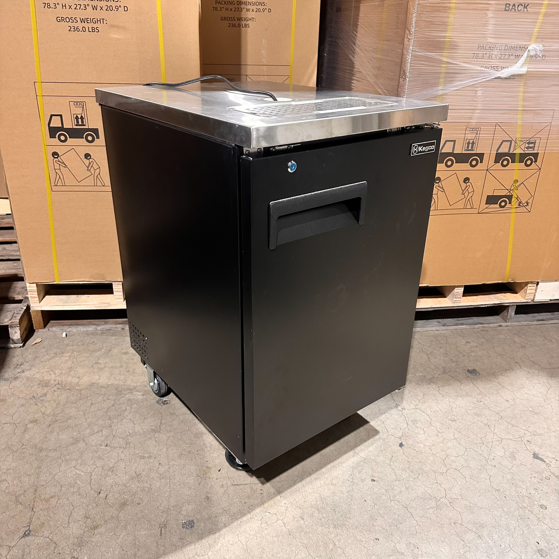 Forced air refrigeration ensures that cold air is evenly distributed throughout the cabinet so there are no hot spots. Cold air is directed into the beer tower, ensuring that the lines are cool all the way up to the faucet so there's less foam between pours.