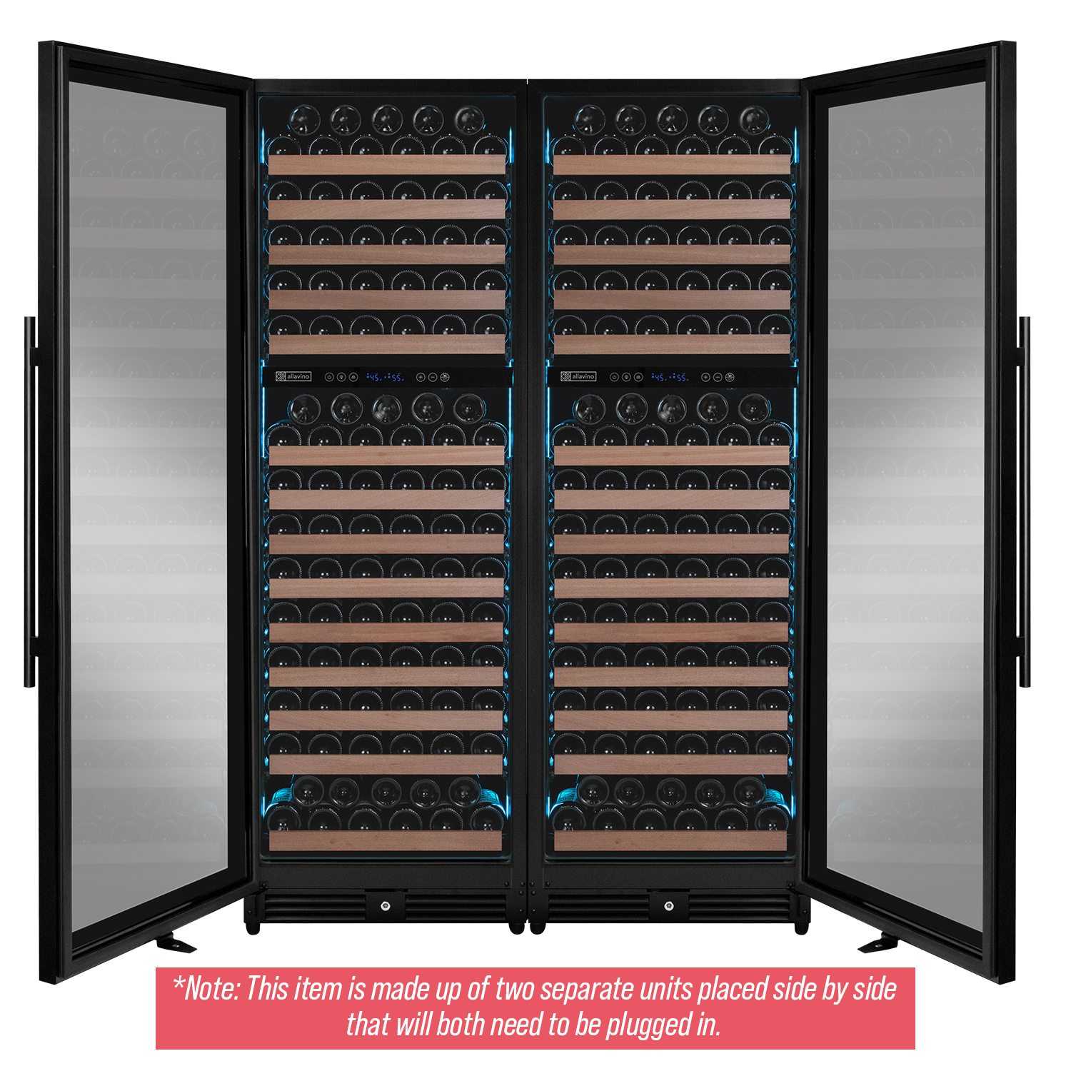 Allavino Reserva Series 344 Bottle Four Zone Built-In Side-by-Side Wine Refrigerators with Black Metal Doors
