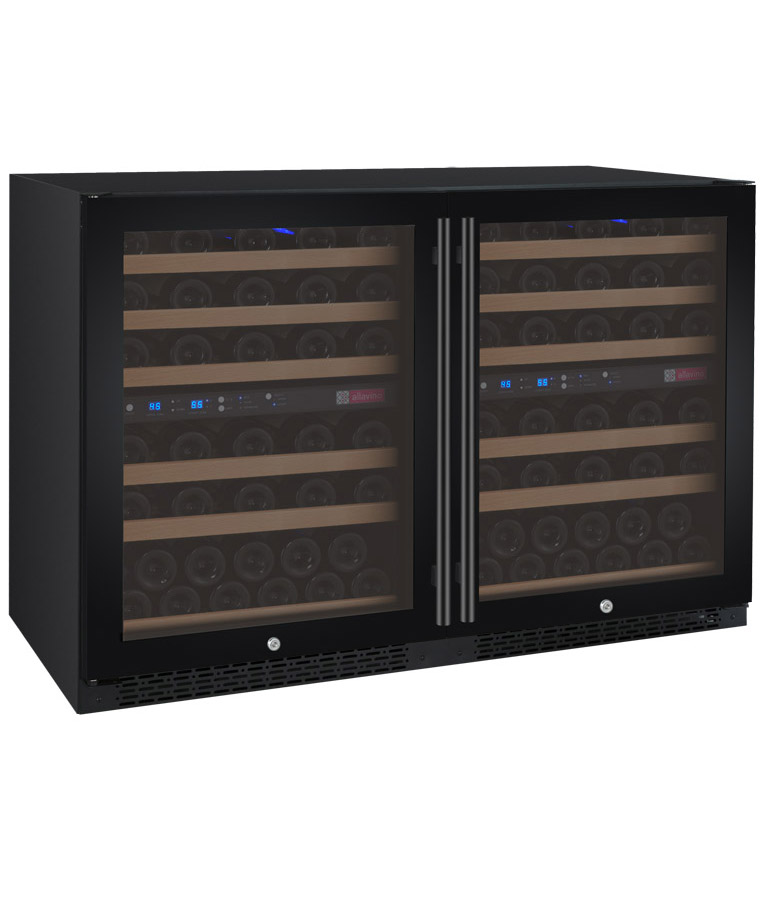 Allavino 47" Wide FlexCount Series 112 Bottle Four Zone Black Side-by-Side Wine Refrigerators