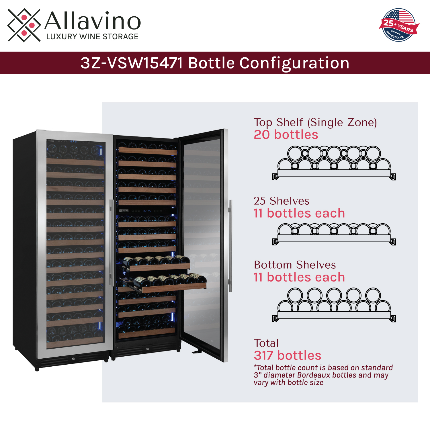 - Reserva uses FlexCount shelving design gives you flexible storage options for up to 317 wine bottles