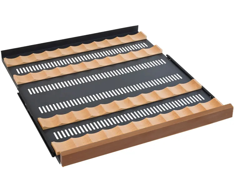 All black interior emulates the traditional wine cellar. - Roller-Glide Shelves