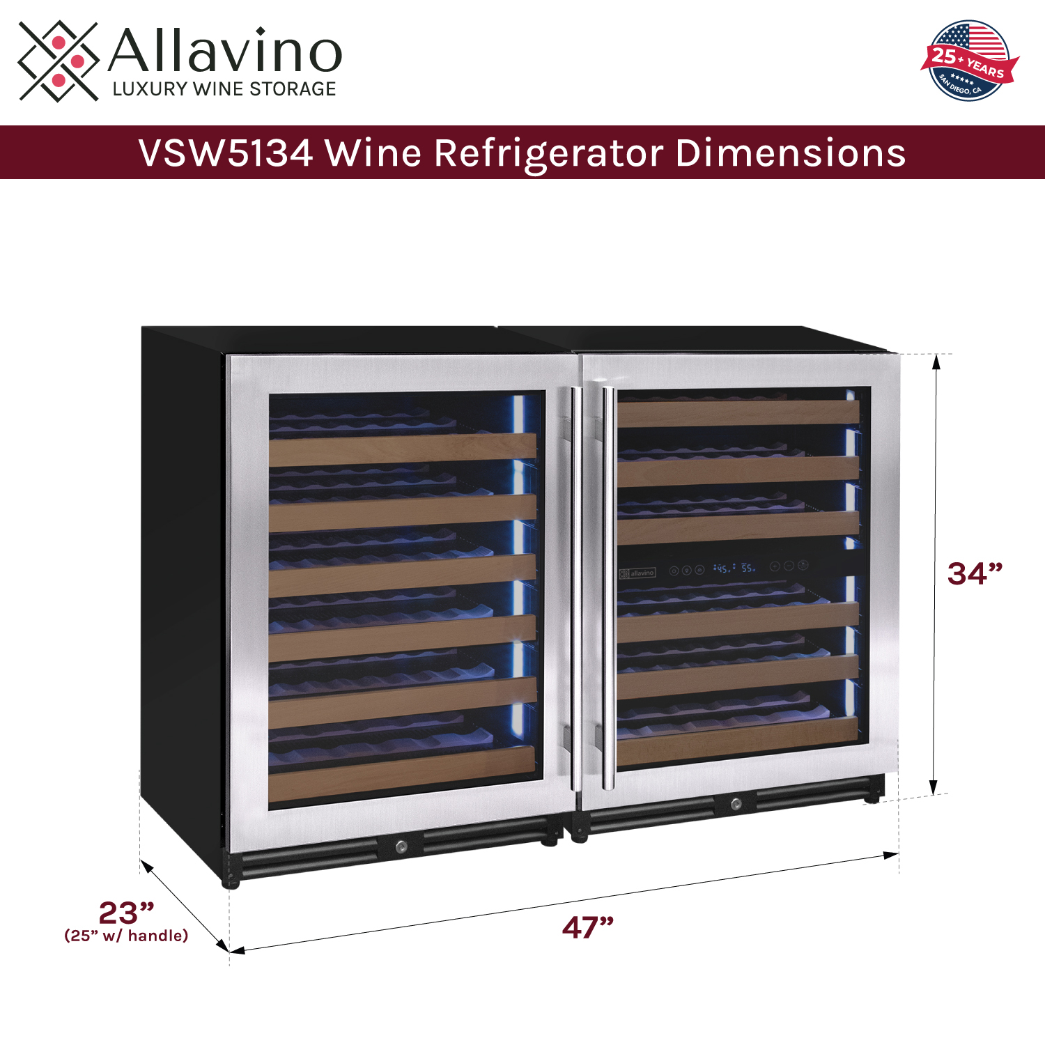 Allavino's exclusive FlexCount shelves give you ultimate flexibility and accessibility, regardless of bottle size. Spacing between each shelf gives you enough clearance to not worry about racks scraping your bottle labels. Wood slats refine each shelf to cradle your wine bottles and are designed with vibration-reduction technology to prevent harmful vibrations from excessive movement and damage.